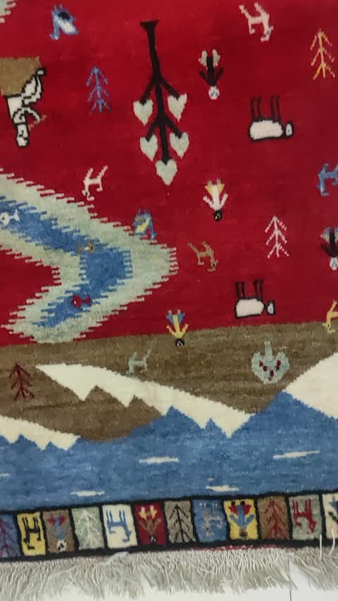 - گبه دستباف - سایز 176 در 123 سانتیمتر - طرح و نقشه خاص و ذهنی بافت 📨 هزینه ارسال بصورت پس کرایه می باشد.