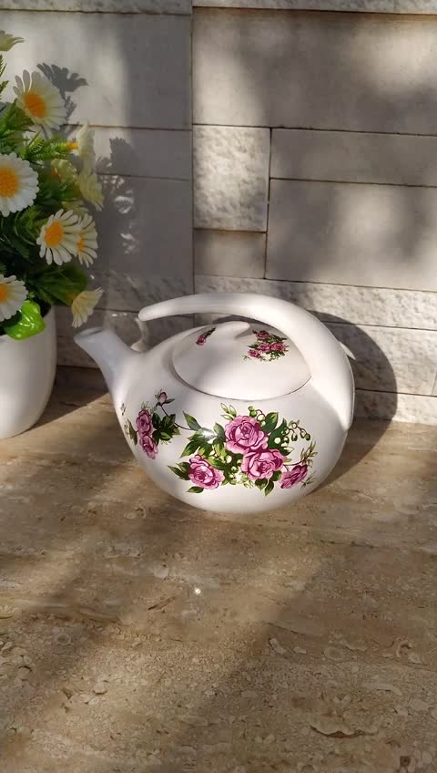 قوری جذذابب و دلبرررر با طرح گلسرخی مناسب سرو انواع چای و دم نوش و .... از شعله غیر مستقیم استفاده شود پخت شده در دمای بالای هزار درجه و لعاب کاملا مصرفی و بدون و میتونه یه دکوری شیک و جذاب و نوستالژیک باشه😍