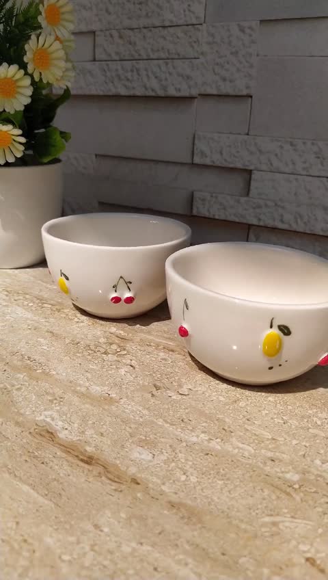 کاسه های برجسته و پرطرفدار آلبالو و لیمو برجسته 🍋🍒 طرح های دیگه هم میتونید سفارش بدید اما مهلت آماده سازی بیست و پنج الی سی روزه☺️ پخت شده در دمای بالای هزار درجه و لعاب کاملا مصرفی و بدون سرب 🌹