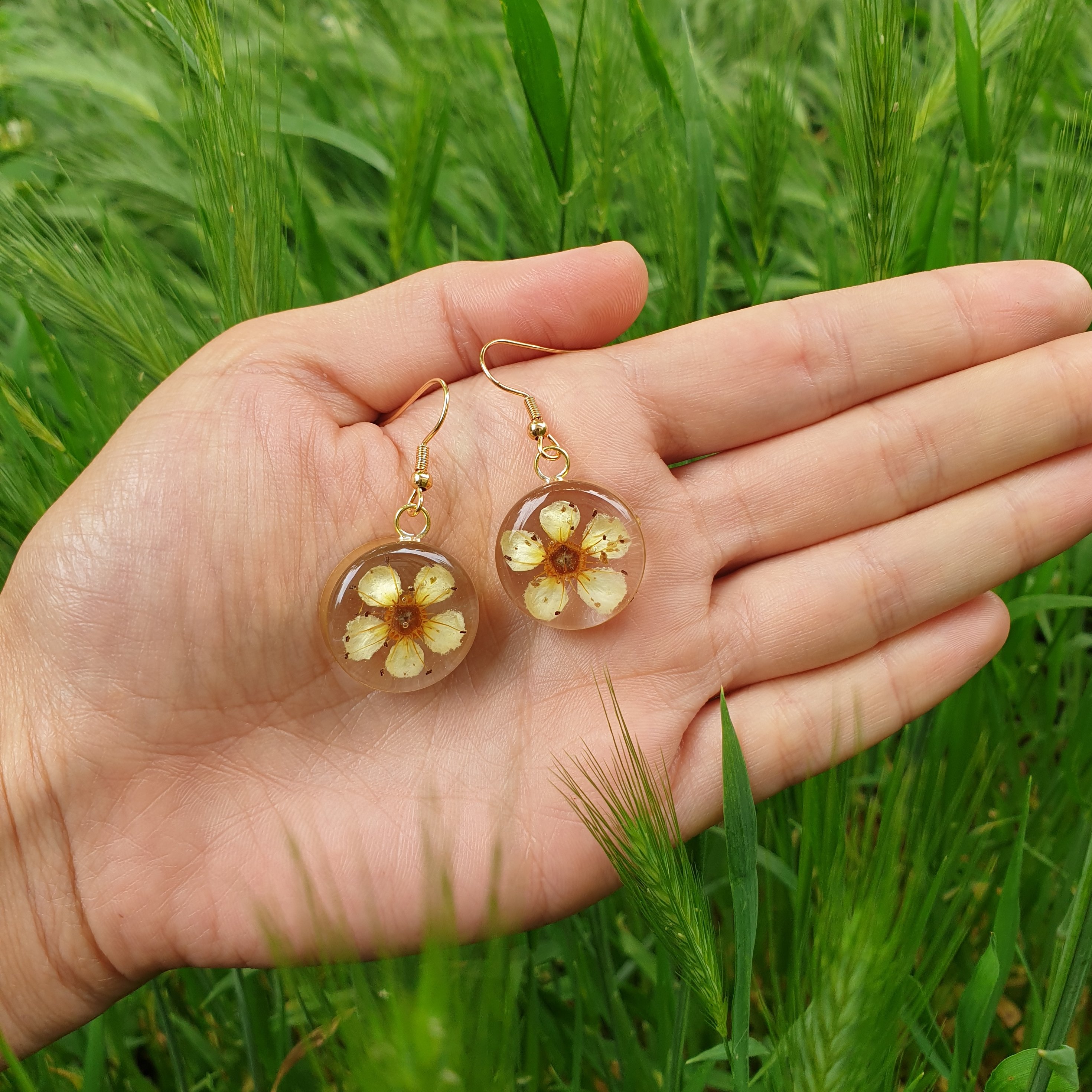 سایر توضیحات: ساخته شده با گل طبیعی - ابعاد: 1*1 - رنگ: طلایی - مناسب برای: گوشواره - جنس: استیل رنگ ثابت