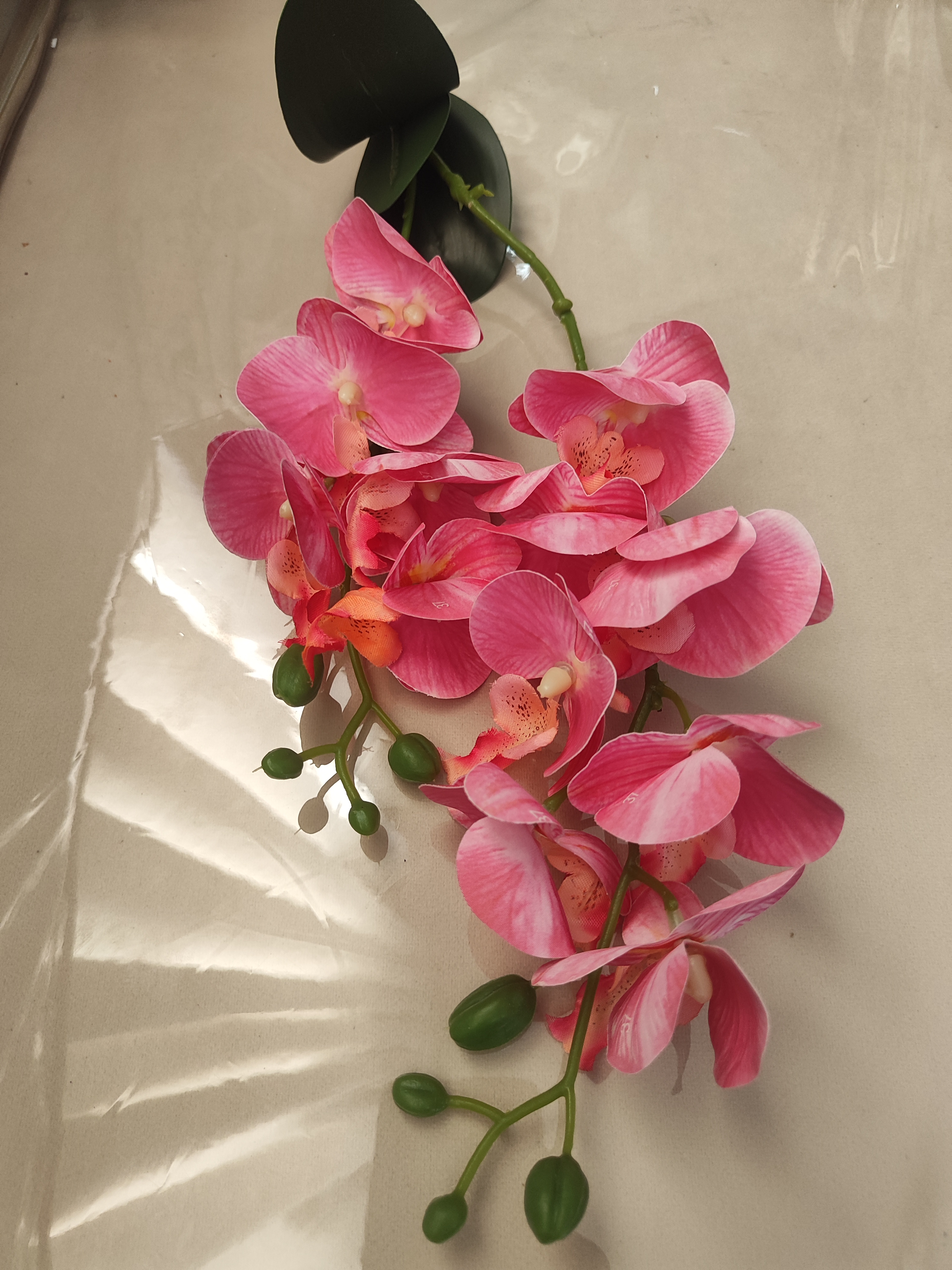 محصول کشور چین ، گل ارکیده دو انشعاب عالیجناب با کیفیت پارچه ای لمسی و گلهای زیبا و نزدیک به نمونه های طبیعی گل ارکیده مناسب انواع گلدان رومیزی و گلدانهای مدرن می باشد . یکی از مزیت های این محصول دیزاین برگ و شاخه طراحی شده کامل شرکت خارجی بوده ، لذا برگ های ارکیده که در قسمت ساقه محصول می باشند ، شما را از خرید برگ ارکیده ، بصورت جدا گانه بی نیاز می کند .