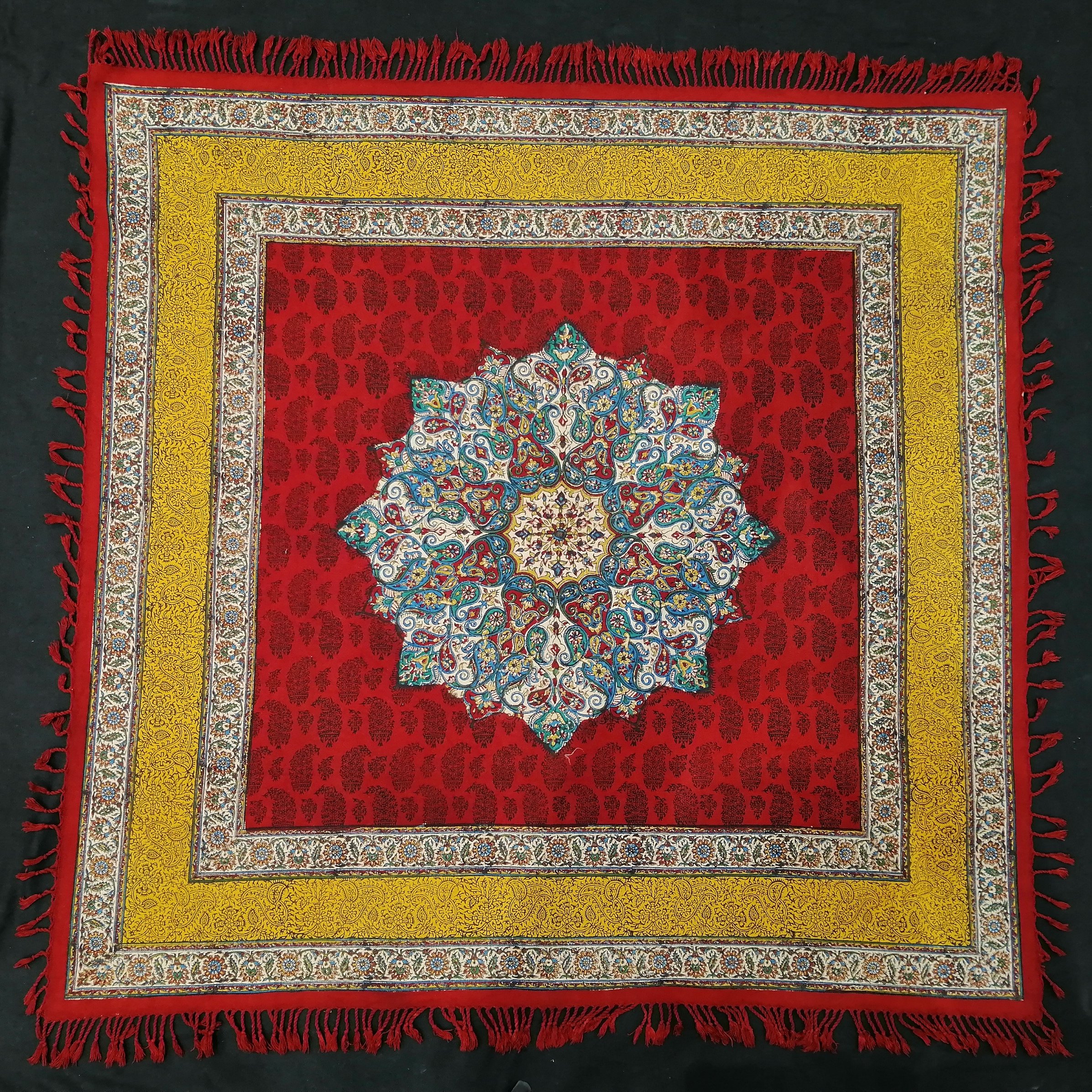 رومیزی 100*100 طرح ترنجی این کار از بهترین و سخت ساز ترین طرح های موجود در کار قلمکار میباشد از لحاظ کیفیت رنگ در بالاترین سطح کیفیت رنگ میباشد و از رنگ طبیعی در این کار استفاده شده طرحی خاص و زینت بخش منازل شما مناسب برای رومیزی و سفره موجود در سایز 100*100 100*150 140*200 160*240 این اندازه در رنگ های مختلف موجود می باشد