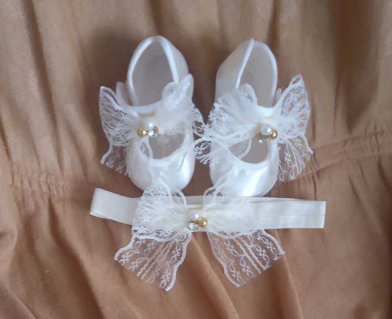 ست پاپوش و هد نوزادی در رنگ خامه ای جنس رویه ی کار ساتن در دو سایز صفر و یک موجوده بسیار سبک و راحت سایز صفر ۳تا ۶ماه سایز زک ۶ماه تا یکسال
