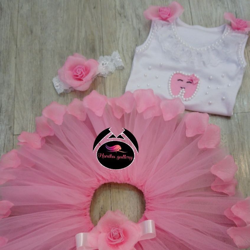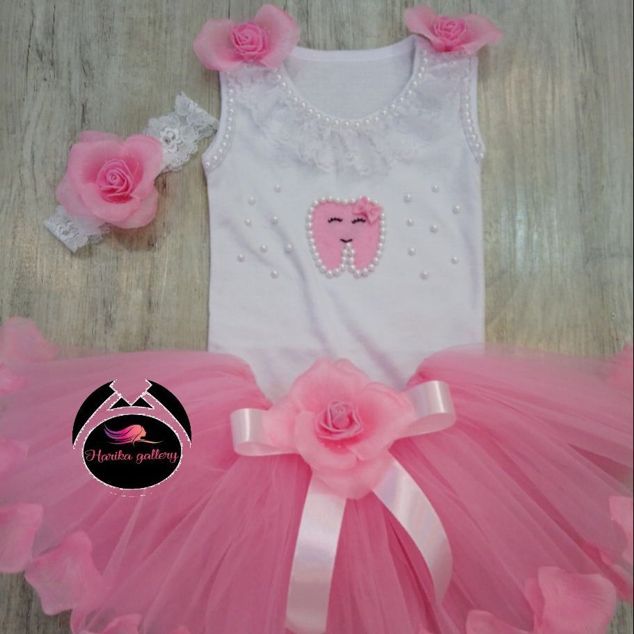 ست دخترونه دندونی طرح گلبرگی این ست مناسب جشن دندونی که شامل بلوز و دامن وتل میباشد توجه 👇👇👇 دوستان عزیز توجه داشته باشین این لباس بلوز تریکو و معمولی نیست بلوز نخ پنبه درجه یک و با کیفیت و همچنین تور دامن تور ارگانزا و آهار دار نیست تور آلما کار شده و دقت داشته باشین این قیمتی که من زدم هم خیلی مناسبه و هم با جنس باکیفیت کار شده تو سایت ها و کانالهای مختلف مشابه کار زیاده با جنس معمولی و بی کیفیت و قیمت بالا حتما موقع خرید به جنس لباس و قیمت کارتوجه داشته باشین