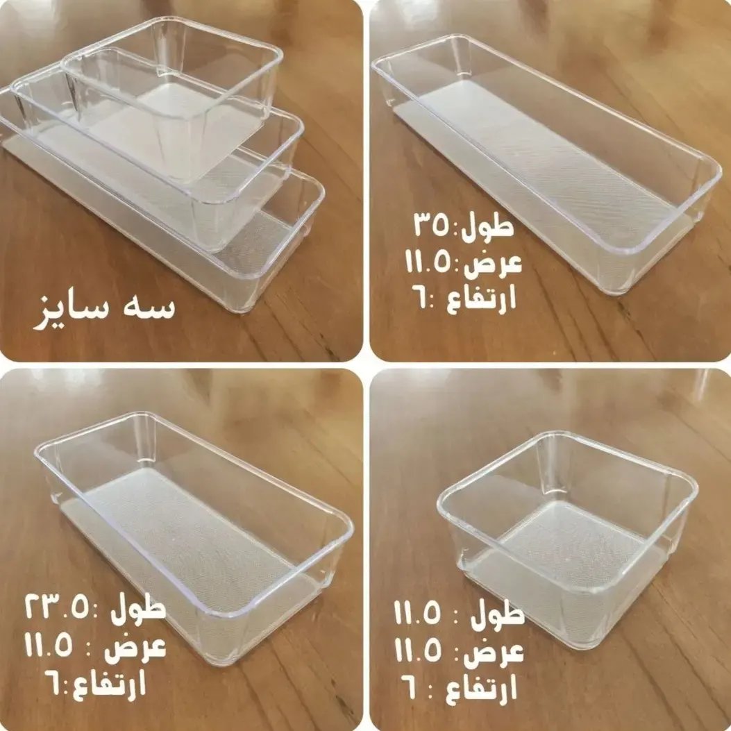 نظمدهنده کشو آکریلیک شفاف، ابزاری ایدهآل برای مرتبسازی کشوی آشپزخانه، میز آرایش یا میز تحریر. در سه سایز مختلف، مقاوم، شفاف و قابل ترکیب. نظم را به خانه خود بیاورید.