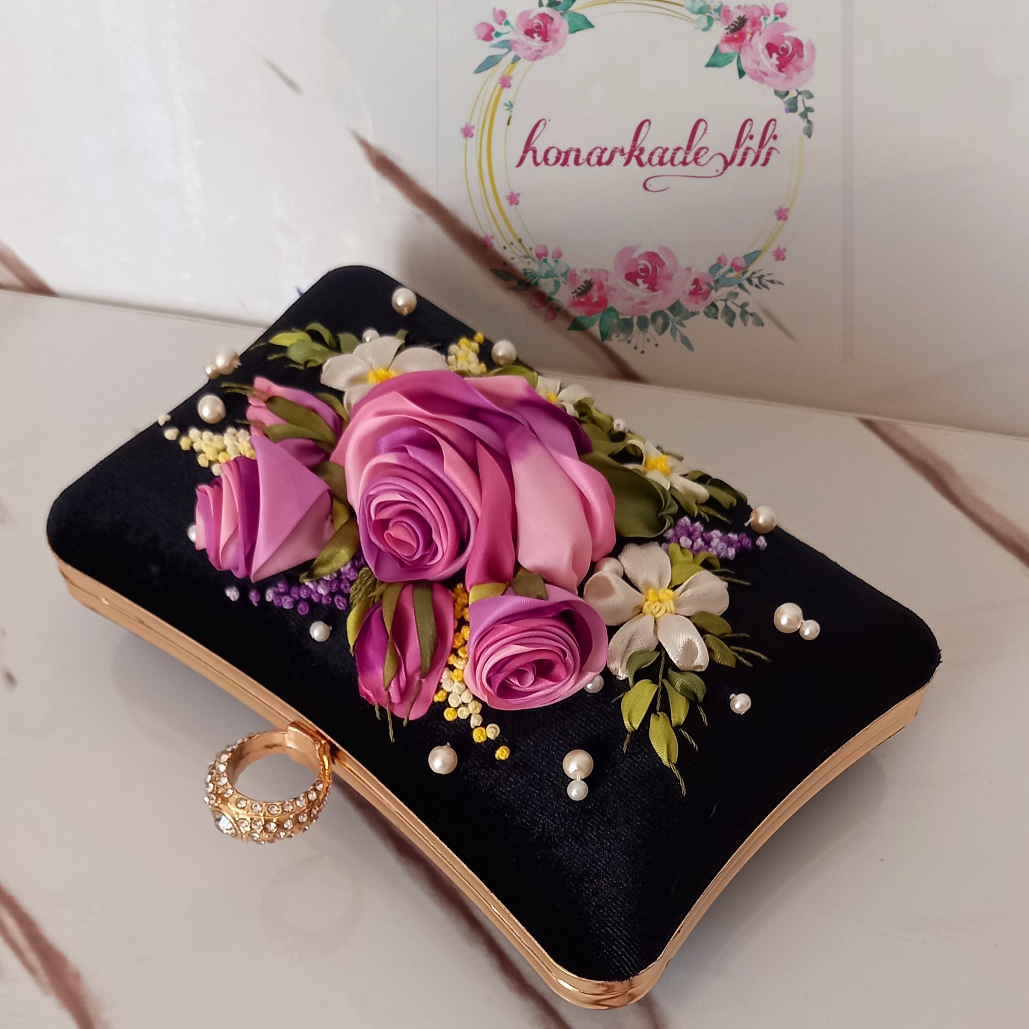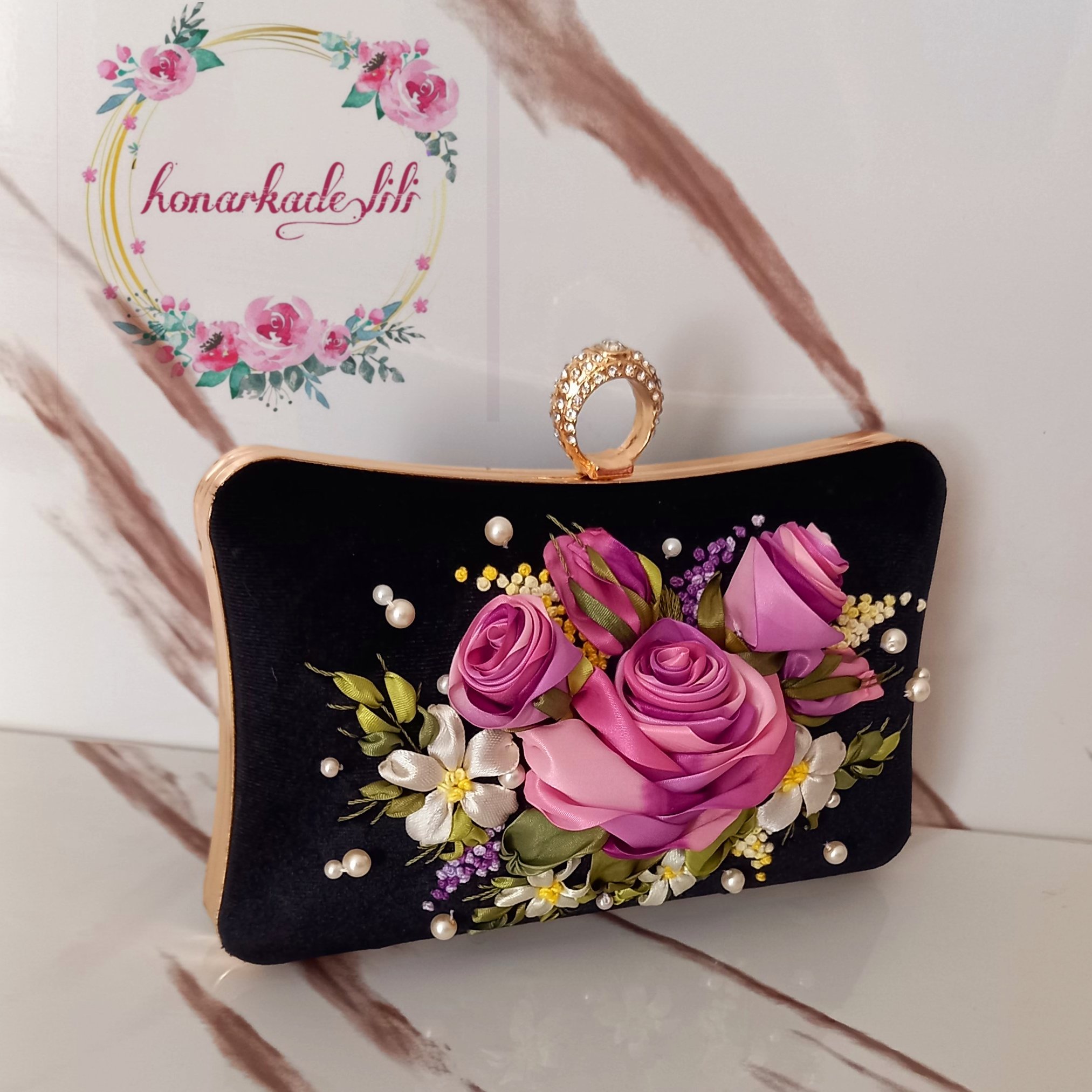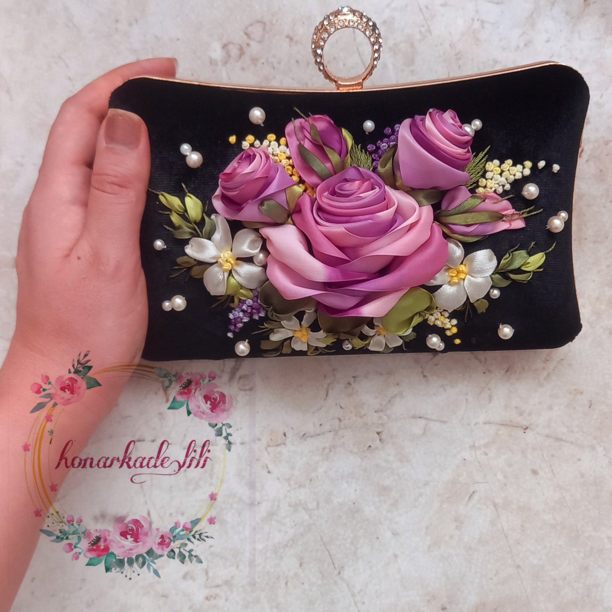 کیف دستی دست ساز رباندوزی شده با ربان صد در صد ترک آستر کشی شده با مخمل