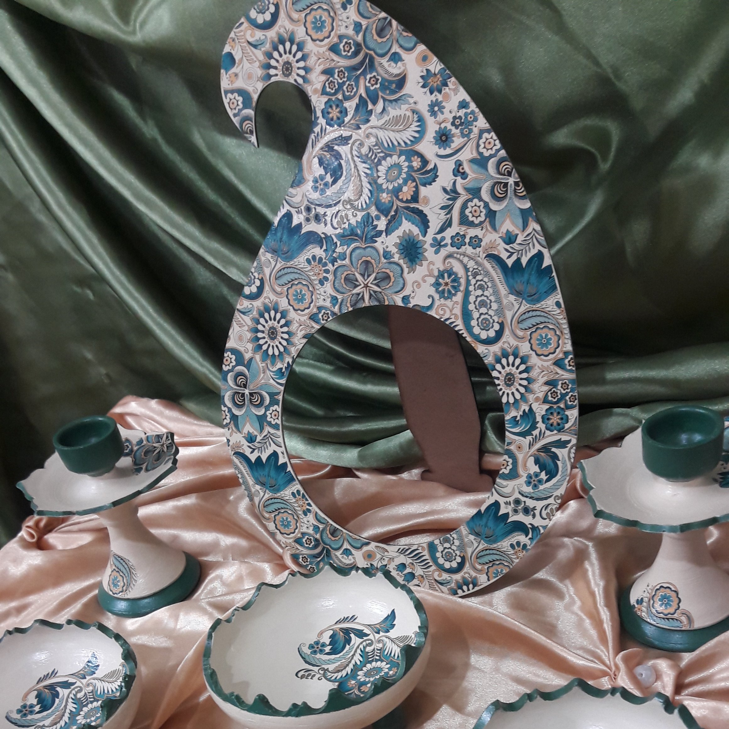 هفت سین سنتی، آیینه چوبی،بقیه کار سفال از بهترین رنگهاو مواد