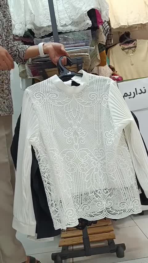 شومیز مجلسی دانتل استر دار هفت مدل دانتل رنگبندی سفید و مشکی استین پلیسه با جنس کرسپو فری سایز 36-44(نهایت46) اندازه ها چک شود قد 62-65 قد استین 55 دور سینه 106