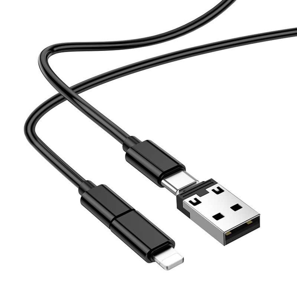 دارای تبدیل های لایتنینگ، USB و میکرو طول کابل تایپ سی 30 سانتی متر محفظه کارت حافظه و سیم کارت قابل استفاده برای اندروید و iOS قابلیت انتقال اطلاعات شارژ سریع و ایمن