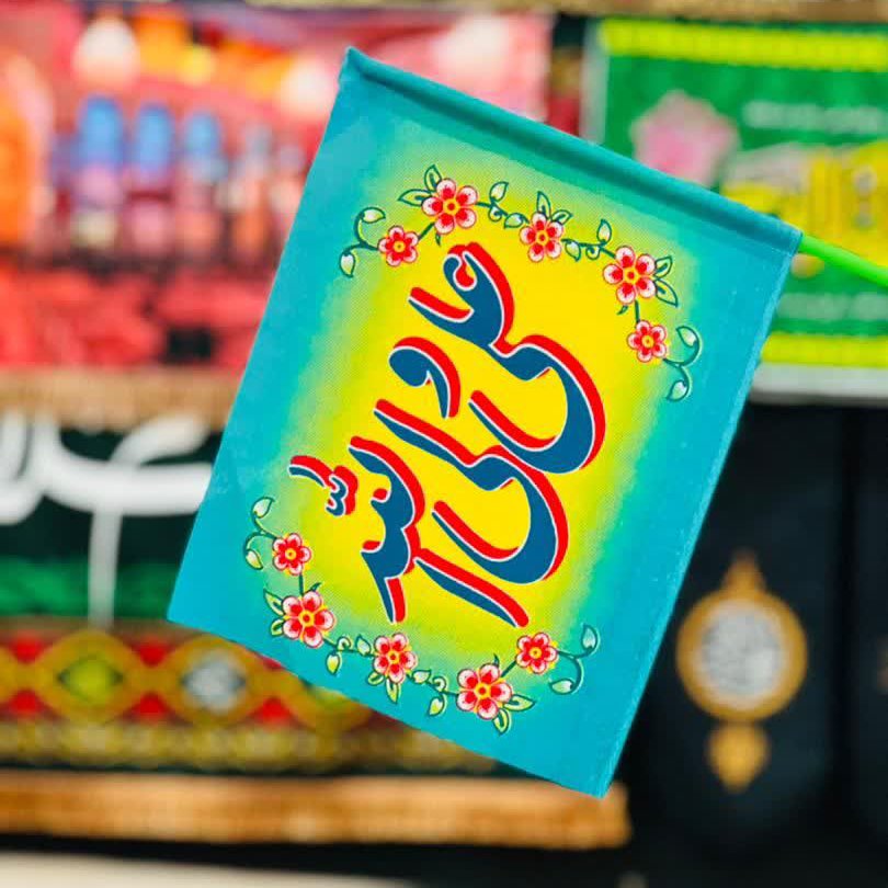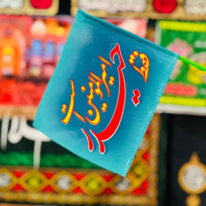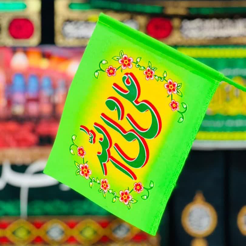 پرچم دستی کاروان غدیر ابعاد ۲۳ در ۲۷ حدودی قیمت مناسب و خوب یا امیرالمؤمنین علیه السلام