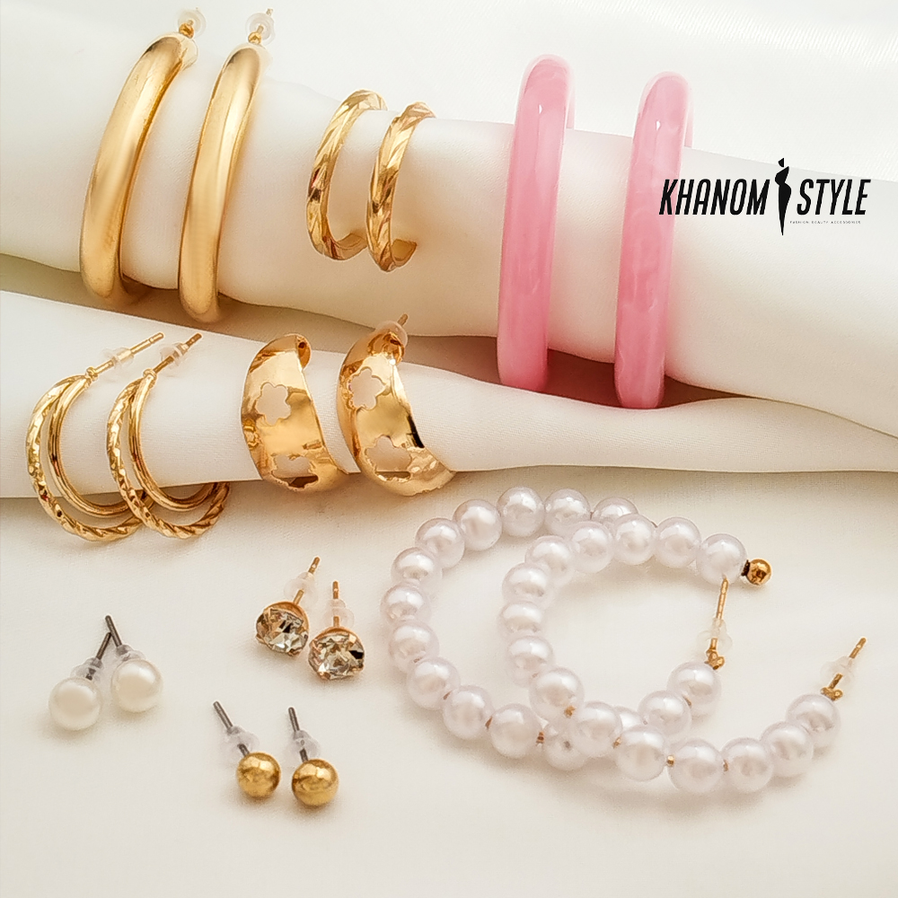پک گوشواره زنانه فانتزی با طرح های(مرواریدی-طلایی-صورتی) E901T6