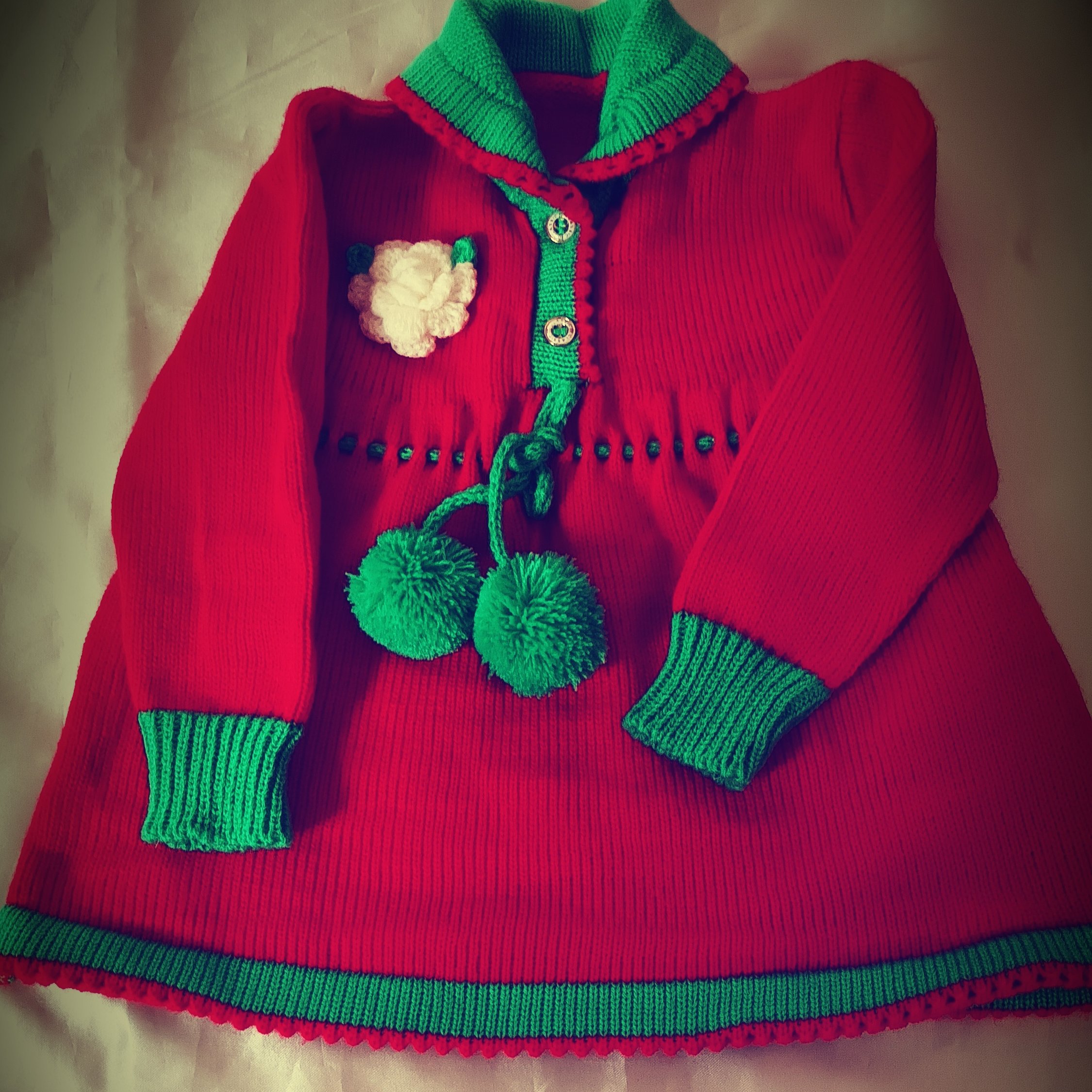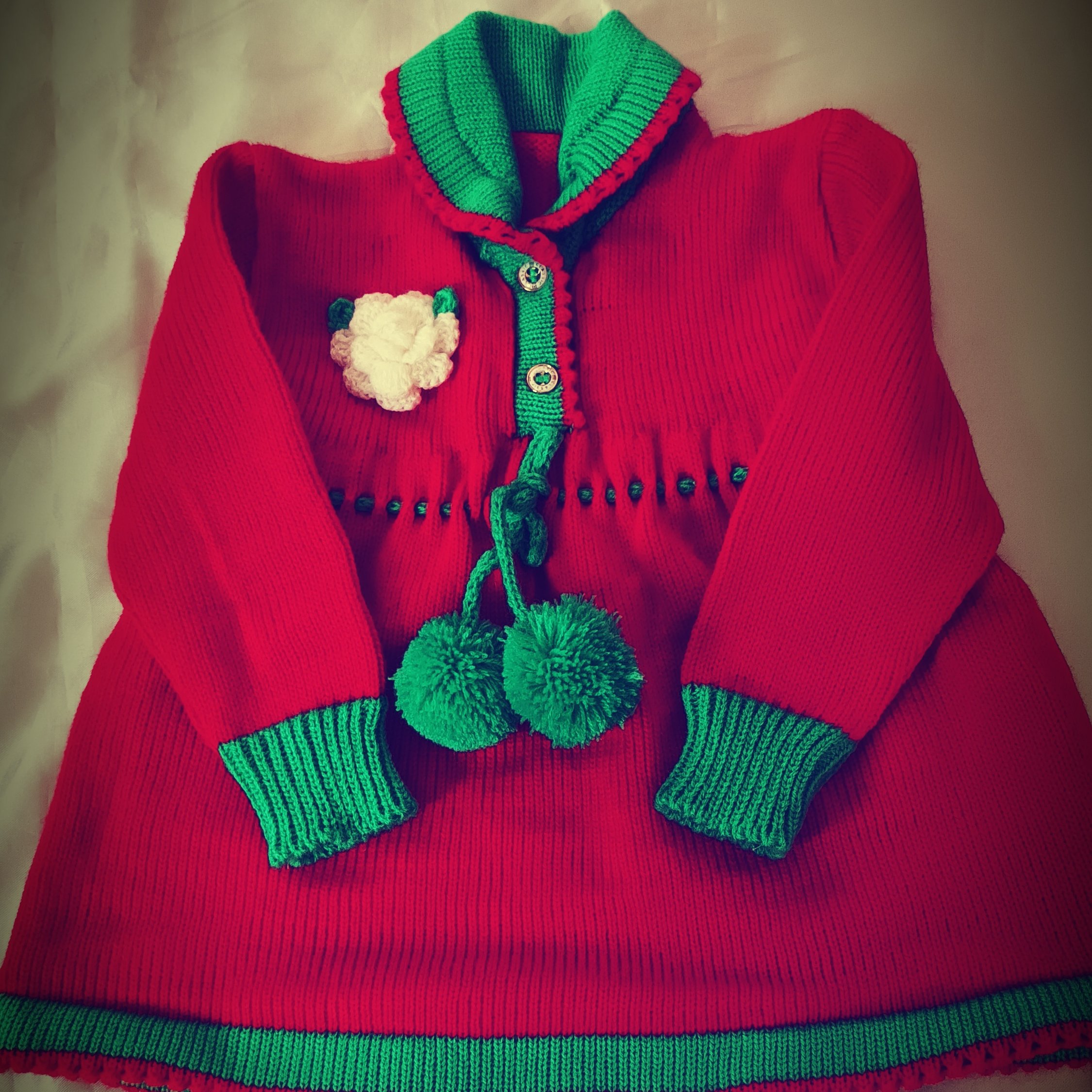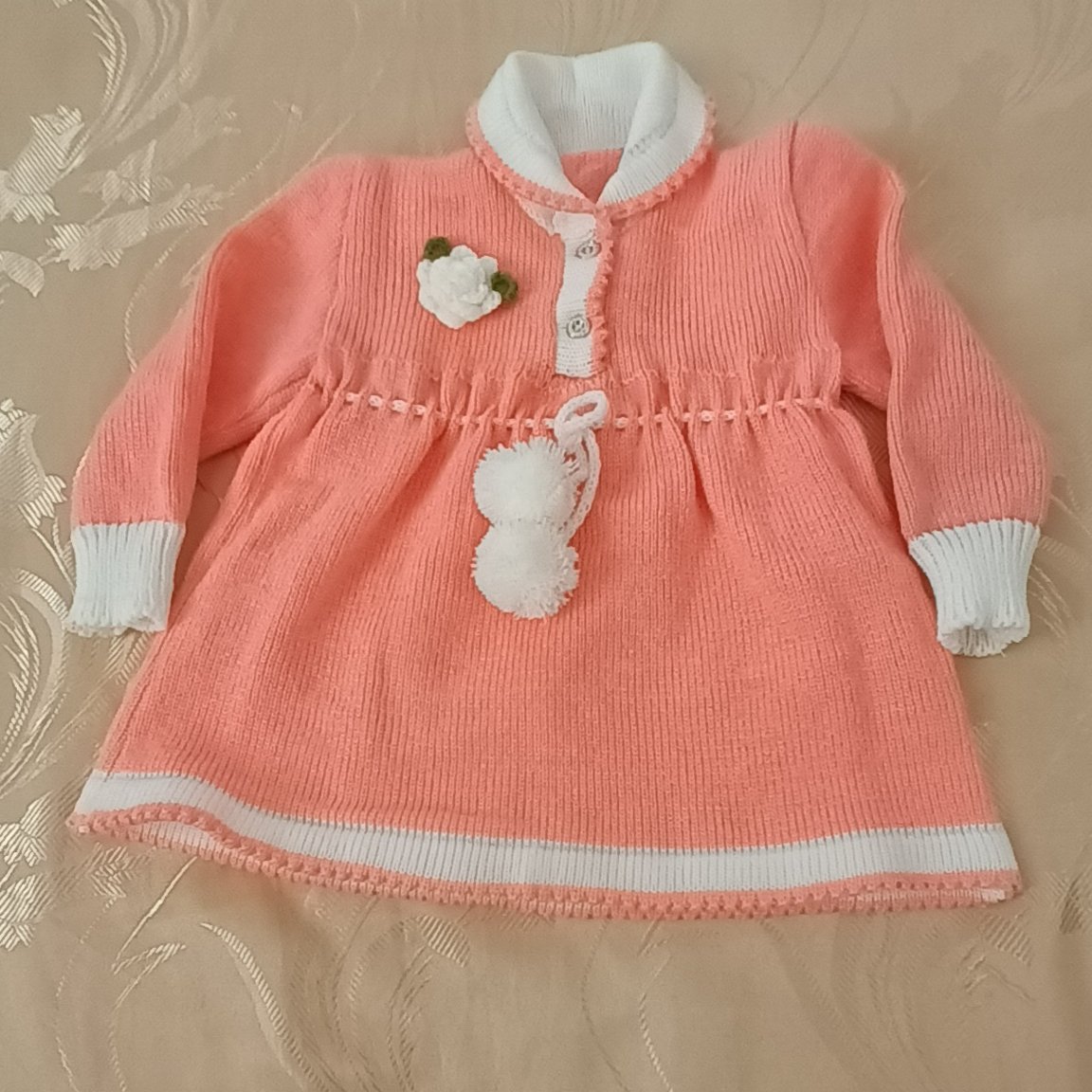 پیراهن دخترانه = ابعاد قد 36 سانت و دورسینه 50 س و استین 25 سانت