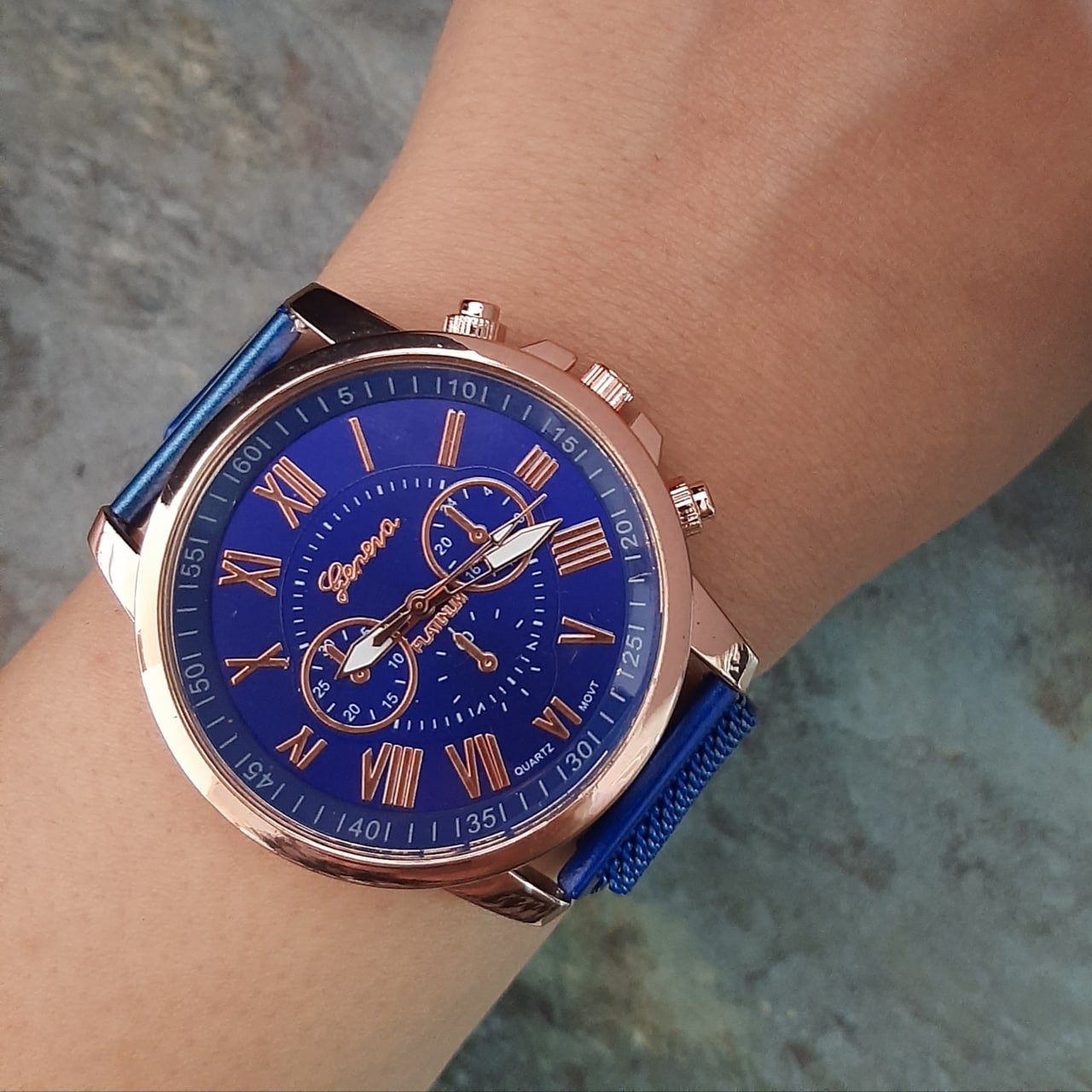 کد 10476 ساعت جنوا - بندمگنتی سورمه ای - کیفیت عالی - صفحه درشت - اندازه شیشه صفحه ساعت 35 میلیمتر - شش ماه گارانتی موتو