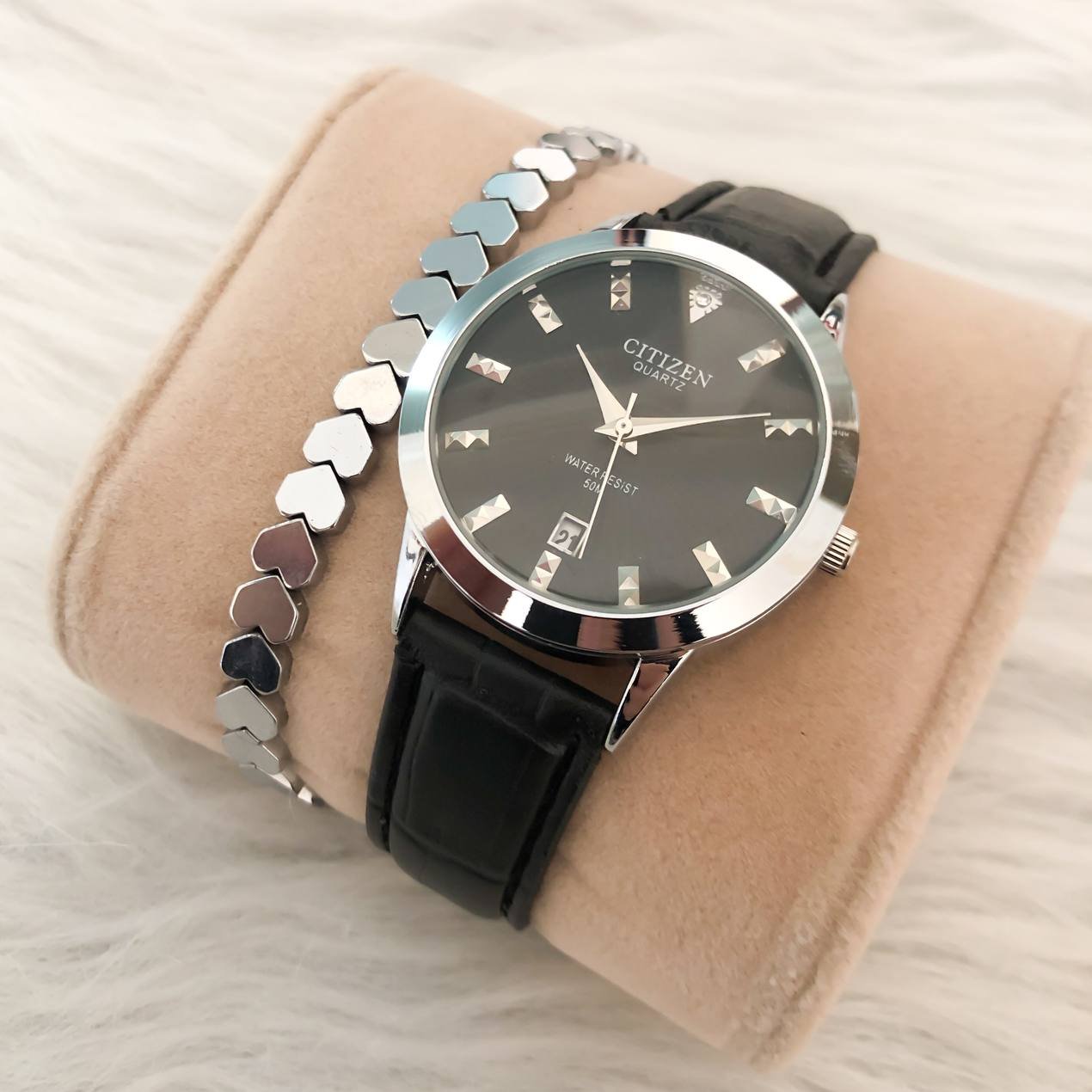 ساعت زنانه بندچرمی مارک سیتیزن دارای تقویم. کیفیت عالی. شش ماه گارانتی موتور ارسال با جعبه کادویی مخصوص ساعت و کارت ضمانت قیمت ساعت زنانه فقط ۴۲۰هزار تومان قطر شیشه ساعت زنانه ۳ سانتیمتر
