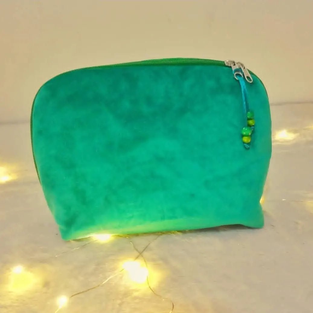 کیف ارایش با ۶عددجیب داخلی برای رژ،ریمل کرمهای کوچک وتراش و.... جنس پارچه مخمل قابل شستشو