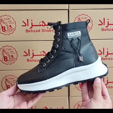 پوتین کاپشنی شمعی ساق بلند بند دار دخترانه زنانه سایز 37 تا 40 کفی طبی زیره پیو رنگ مشکی سفید کرم