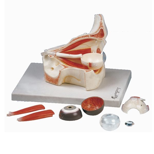 این مدل تقریبا سه برابر اندازه طبیعی است و از ۸ قطعه تشکیل شده است . این مدل موقعیت کره چشم را در بخشی از استخوان کاسه چشم نشان میدهد. ساختمان پردههای چشم شامل: صلبیه و قرنیه، مشیمیه و عنبیه و شبکیه. همچنین اجسام مژگانی، عدسی، زجاجیه، عصب بینایی و عضلات خارجی کره چشم در این مدل بهخوبی نشان داده شدهاند.