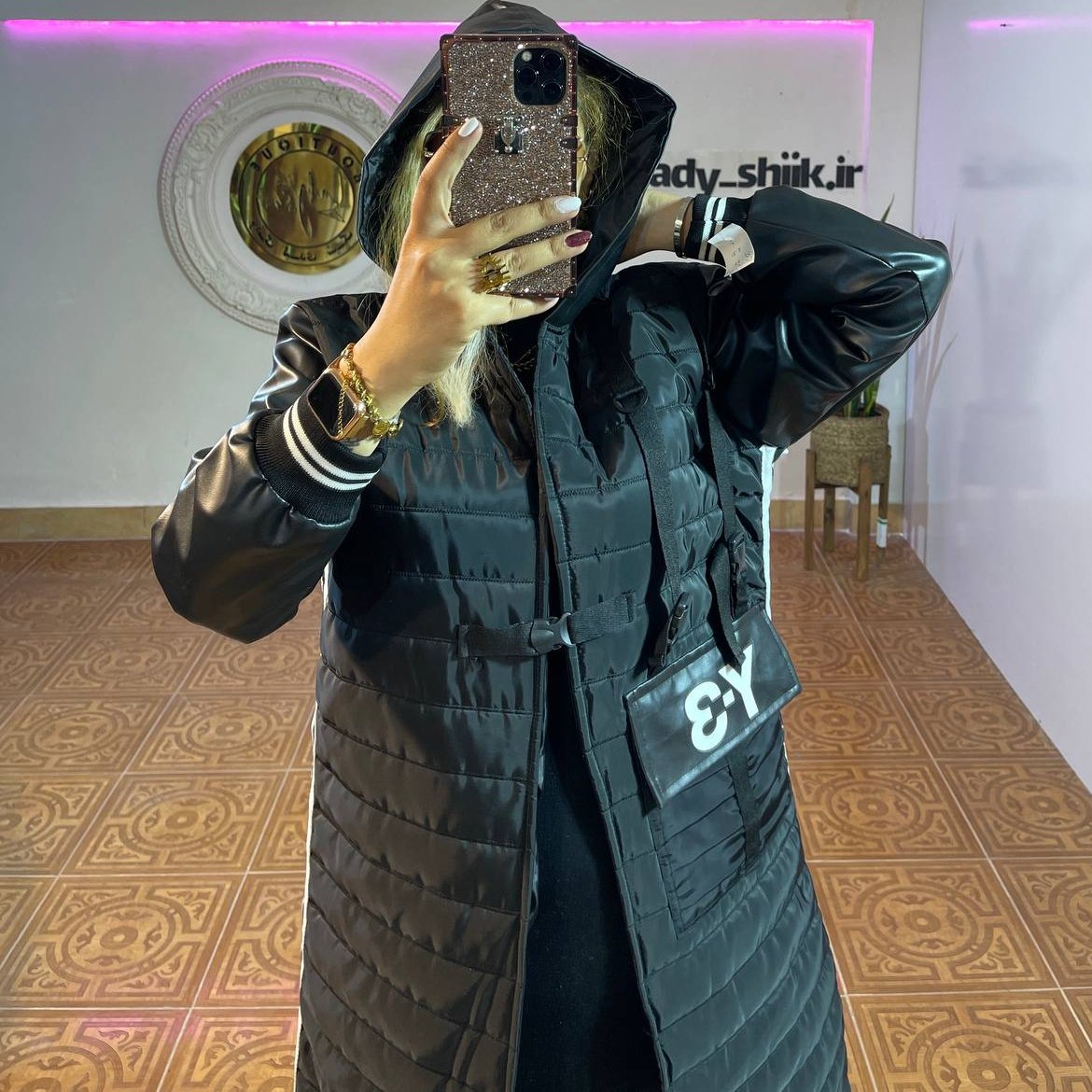 پالتو طرح Y3 و Balensiga کلاهدار آستین چرم سایز بندی مناسب 36&44 آستردار