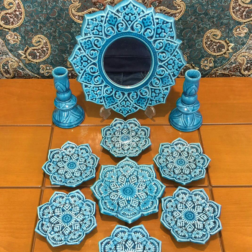 مناسب برای: هفت سین شب عید - رنگ: فیروزه ای - ابعاد: حدودا 15 سانتی - سایر توضیحات: هفت سین شب عید یکی از بخش های اصلی هر سال یک ایرانی است و با استفاده از هفت سین های سفالی میتوان زیبایی بیشتری به منازل خود داد. هفت سین های پیش رو بعضا از ترکیب سنت و مدرنیته الهام گرفته و زیبایی دوچندانی به منازل و فروشگاه های شما میدهد. - جنس: سرامیک