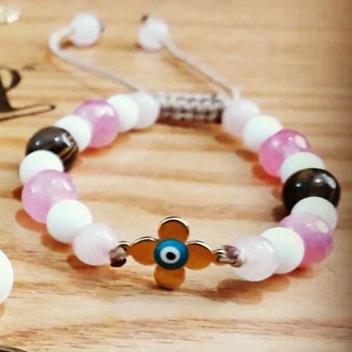 دستبند درخت زندگی به همراه سنگ ماه تولد خرداد، گردنبند تمام استیل با پلاک خرداد، دستبند دخترانه با پلاک استیل چشم نظر
