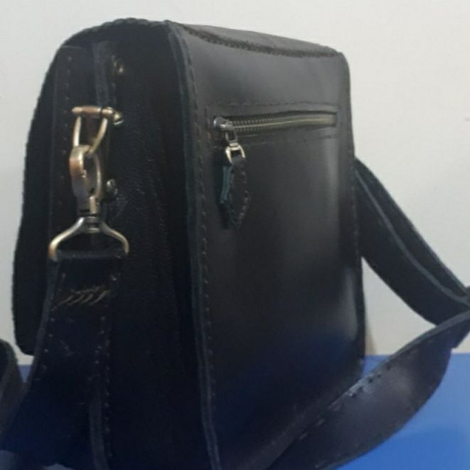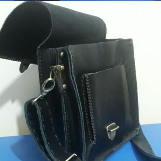 این کیف کاملا دستدوز ،واز چرم طبیعی گاوی دوخته شده ،قابل اجرا در رنگهای مختلف بوده ،دارای دوقسمت مجزا و زیپ در قسمت پشت کیف با یک بند بلند قابل تغییر بلندی