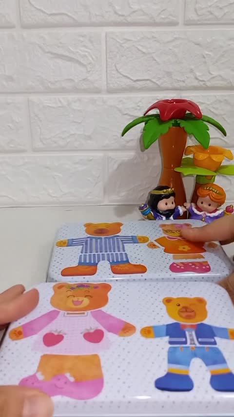 معرفی جورچین لباس خرسی مگنتی جورچین لباس خرسی مگنتی از اون دسته بازی های فوق العاده جذابه که بچه ها رو در مقابل انتخاب های زیادی قرار می ده و می تونه به طور کاملا غیر مستقیم مفاهیمی مثل احساسات و ست کردن لباس ها یا لباس های دخترونه پسرونه رو یادشون بده. جورچین لباس خرسی مگنتی دارای دو پک مختلف با جعبه های فلزی هست که داخل یک پک لباس های بابا خرسی و خرس کوچولو و داخل پک دیگر لباس های مامان خرسی و خرس کوچولو قرار گرفته است. تمام قطعات جورچین لباس خرسی مگنتی چوبی و مگنتی هستند و به همین دلیل هم بسیار زیبا و کارآمد هستند و هم به بدنه ی جعبه ی فلزی می چسبند و می توانند مثل یک صفحه از جعبه استفاده کنند. بازی کردن با جورچین لباس خرسی مگنتی می تواند علاوه بر سرگرمی کودکان دقت و تمرکز آن ها را افزایش داده و آن ها را با مفاهیم مختلف آشنا کند تقویت مهارت دست بهبود دقت و تمرکز بهبود حافظه ی تصویری آموزش مفاهیم پرورش هوش محیطی و اجتماعی