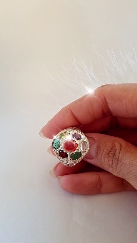 انگشتر نقره مردانه هفت نگین دست ساز .تمام نگین ها اصل میباشند.نگین فیروزه اصل .نگین عقیق اصل.نگین در نجف اصل.نگین یاقوت سرخ اصل.نگین زمرد اصل.نگین زبرجد اصل.نگین آماتیس اصل.عیار ۹۲۵
