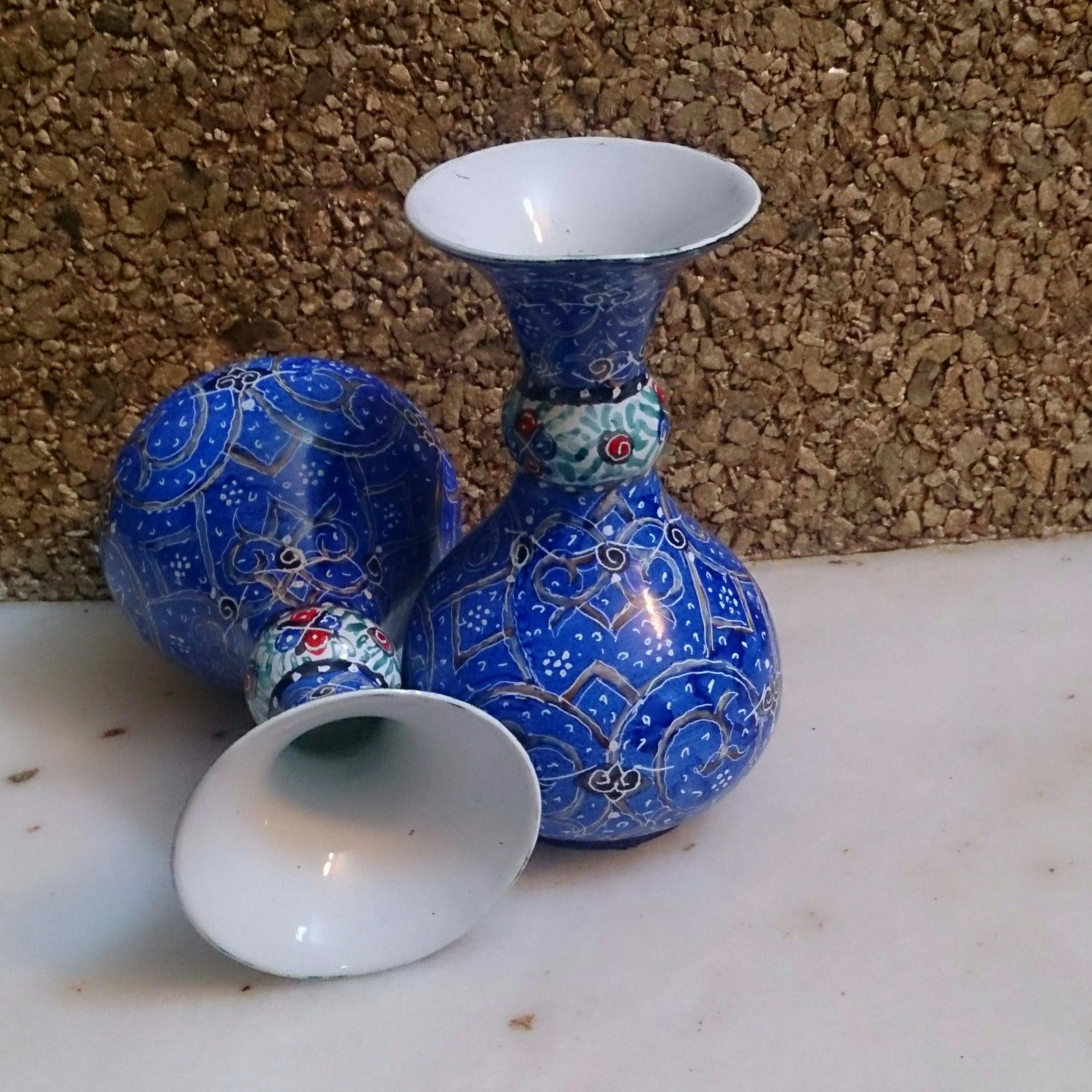 گلدان مینا پس از طراحی توسط استادان مینا طی فرآیند کوره کاری باعث ثبوت رنگ ودرخشندگی آن میشود وهمچنين قابل شستشو میباشد