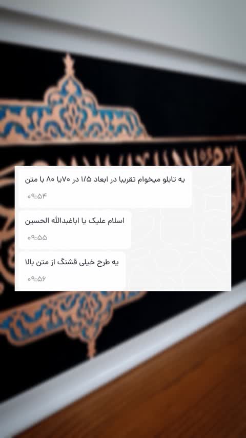 برای ثبت سفارش تابلو به صورت سفارشی، متن و ابعاد موردنظرتون رو ارسال بفرمایید، پس از آن طرح گرافیکی کار طراحی و ارسال میشود، پس از تایید ثبت سفارش میفرمایید و کارتون رو دم منزل رایگان تحویل بگیرید. راستی تابلو شیشه هم داره..