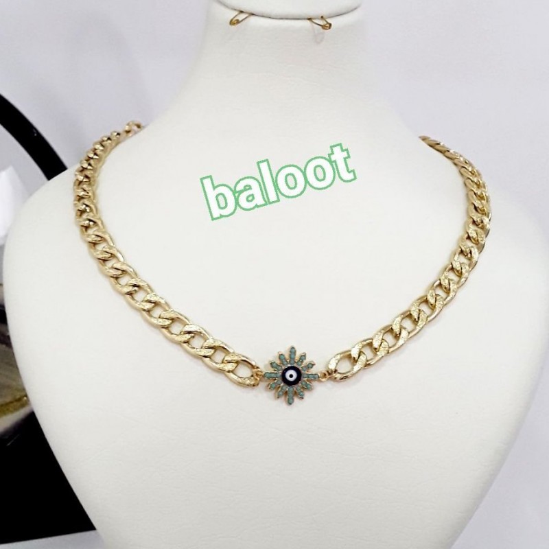 گردنبند زنجیر کارتیر جنس آلمنیوم رنگ ثابت با پلاک چشم نظر مخصوص برای بانوان