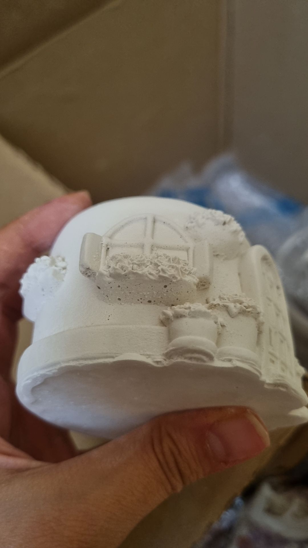 بیس بی کیفیت ملات رو بدون حباب گیری اصولی، ریختن توی قالب و تحویل دادن سعی کردم ترمیم کنم ولی چون طرح زیاد داره نشد متاسفانه حتی به درد رنگ آمیزی هم نمیخوره