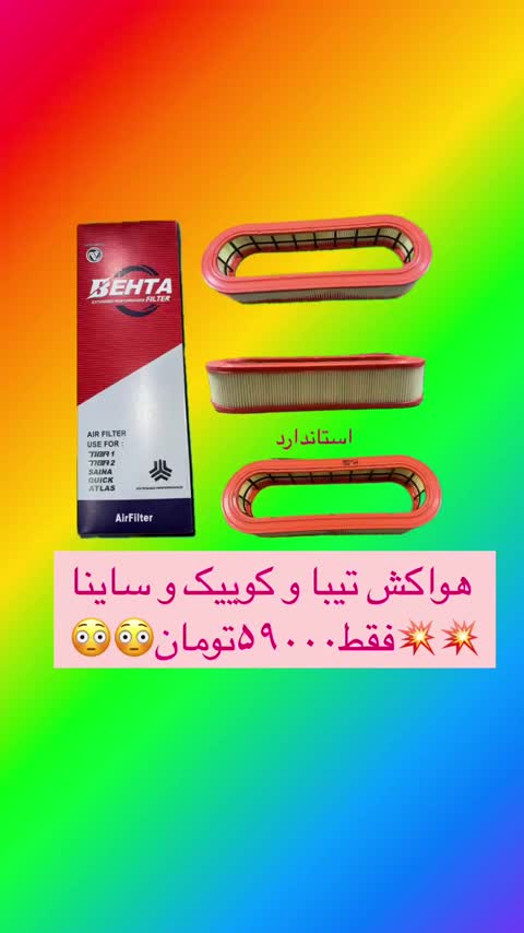 فیلتر هوای تیبا 1، تیبا 2، ساینا، کوئیک کیفیت بسیار خوب تعداد محدود 💥💥💥 فرصت استثنایی را از دست ندهید 🌺🌺7روز ضمانت بازگشت🌺🌺 چرا باید چند برابر قیمت بخرید ؟ با قیمتهای مناسب بخرید و هر تعویض روغن فیلتر خودرو را تعویض نمایید تا مصرف سوخت کمتر و شتاب خودرو افزایش یابد 🔥🔥🔥🔥