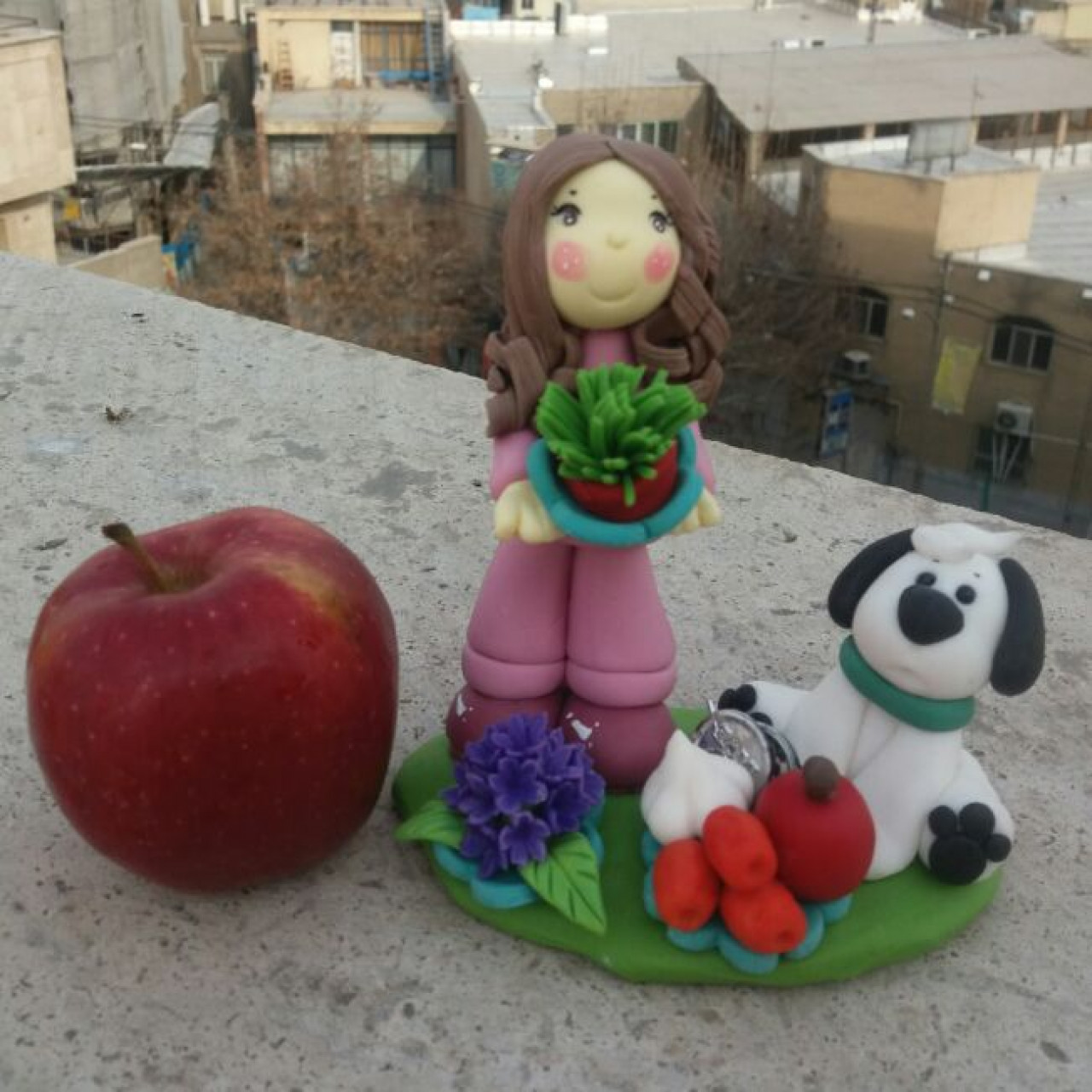 هفت سین همرا با نماد نوروز 97 خواهد آمد بهار میدانم هفت سین تهیه شده از خمیر چینی طرح دخترانه همرا بانماد نوروز 97(سگ)