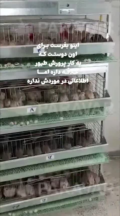 • مجهز به سیستم روشنایی💡 قابل شستشو حفظ شدت نور در بلند مدت نصب و تعویض بسیار آسان ✅ابعاد جایگاه پرنده یا همون قفس (هر طبقه) طـول : 95cm عرض : 50cm ارتفاع : 25cm ✅ابعاد کلاف یا سازه قفس (هر طبقه) طـول : 100cm عرض : 62cm ارتفاع : 52cm ✅ظرفیت هر طبقه برای پرورش بلدرچین : 33 قطعه بلدرچین ✅امکانات هر طبقه : 👈لوله نیپل : جهت آبرسانی به تمام طبقات / جنس درجه 1 👈نیپل : 3 عدد در هر طبقه / برند CLR ترکیه 👈کاسه نیپل : 3 عدد در هر طبقه / جهت جلوگیری از خیس شدن قفس 👈اتصالات کامل : جهت متصل کردن سیستم آبخوری طبقات و قفس ها به یکدیگر 👈قفس های پرآور مجهز به سینی جمع آوری فضولات ضدزنگ و قابل شستشو هستند که بصورت کشویی زیر هر طبقه قرار گرفته. 👈قفس های شرکت پرآور دارای مخزن جمع آوری تخم هستند. ❤️حالا استفاده از قفس چه مزایایی داره؟ 🚀افزایش 2.5 برابری پرنده در سالن به علت استفاده از قفس طبقاتی 🚀جلوگیری از ریخت و پاش دان و مصرف بهینه دان 🚀شناسایی و حذف بلدرچین هایی که دان میخورن ولی تخم نمیزارن نامردا 🙂 🚀کاهش نیاز به نیروی انسانی، 1 نفر بجای 3 نفر 🚀رسیدن به راندمان حداکثری و افزایش سود آوری