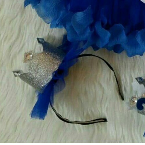 یک لباس جذاب که روی لباس عکس تاج گذاشتم دامنش توتو گلبرگی هست همراه پابند وتاج