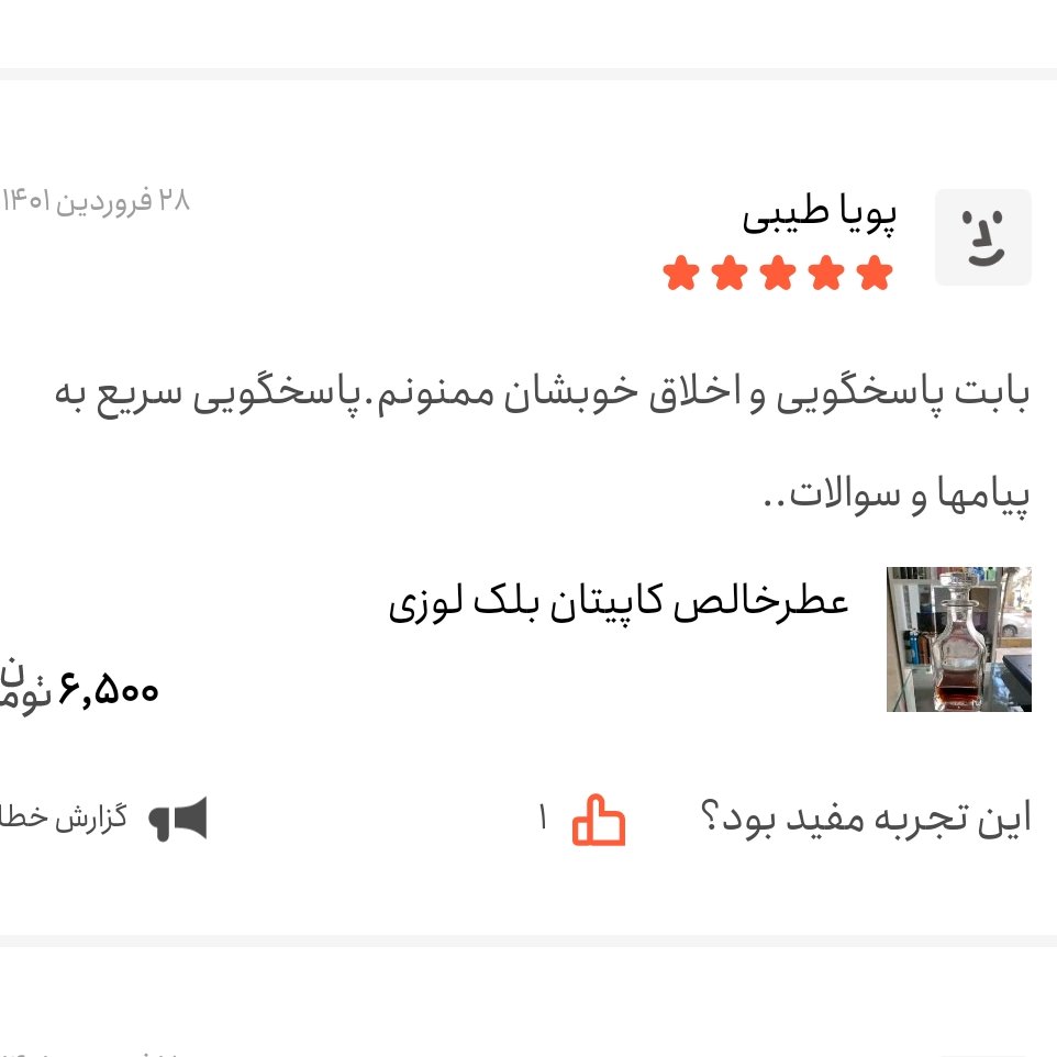 ازغرفه دار محترم تشکر میکنم تحویل سریع وبموقع بود