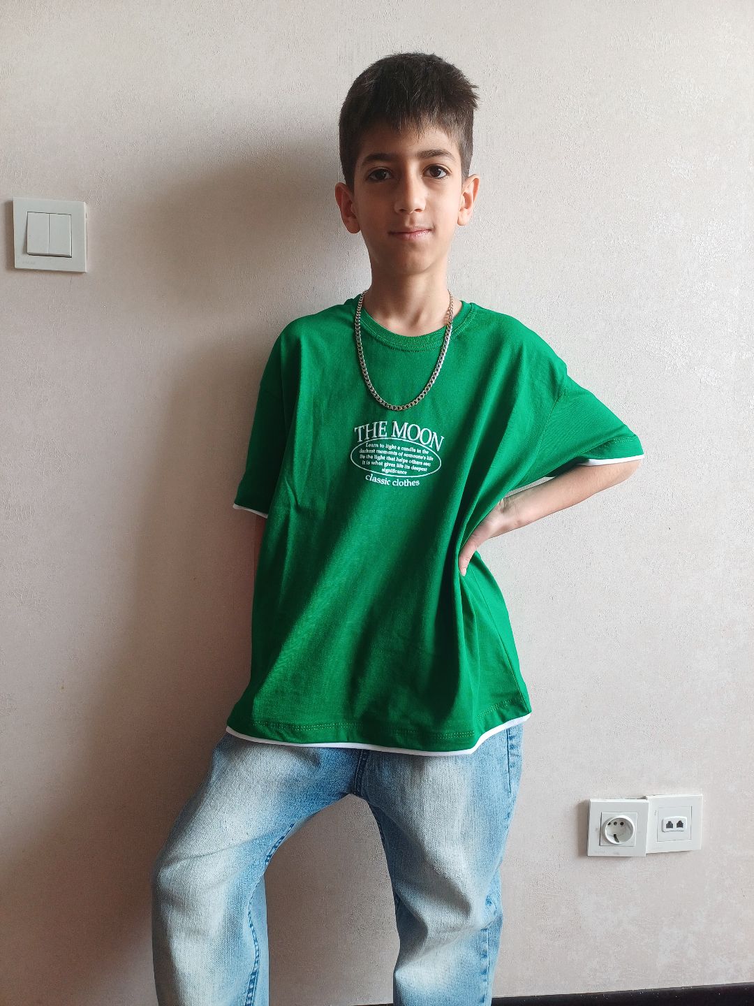 تیشرت تک پشت چاپ قواره لش بچگانه طرح ماه نواردار جنس پنبه سوپر مناسب دختر و پسر سه سایز قواره دار 50-55-60 حدود 6 تا 11 سال سایزبندی سایز 50👈 قد تیشرت 52- پهنا 39 سایز 55👈 قد تیشرت 56- پهنا 42 سایز 60👈 قد تیشرت 61- پهنا 44 ⚠️تا 2 سانت خطای اندازه گیری در نظر بگیرید ⚠️قیمت سایزها متفاوته موجودی سایز 50: سبز2- مشکی2 سایز 55: سرمه ای2- مشکی2 سایز 60: مشکی2