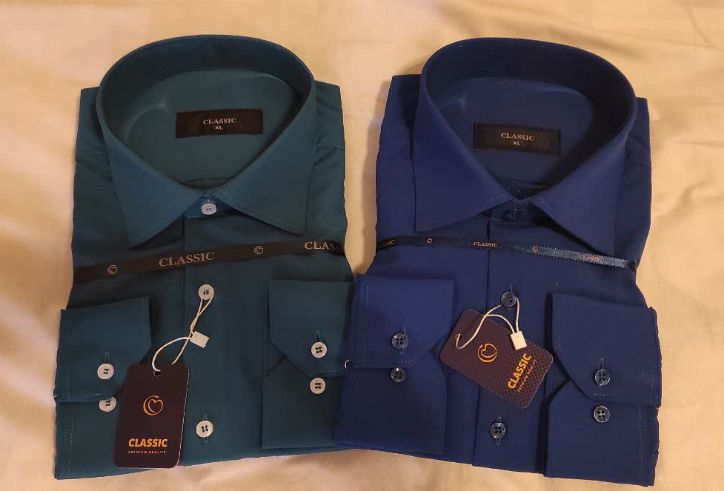 پیراهن مردانه آستین بلند قواره کار کلاسیک یا آزاد یا جعبه ای طرح پیراهن ساده ی دونه جیب داره رو سینه پیراهن جنس پارچش تترون اصفهان لایی کار تُرک snt دکمه کار برند classic فروش پیراهن و ارسالش بدون جعبه میباشد