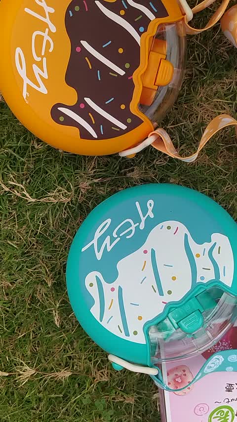 قمقمه طرح دونات پینترستی با روکش سیلیکونی همراه با بند گردنی نی سیلیکونی وارداتی همراه با جعبه