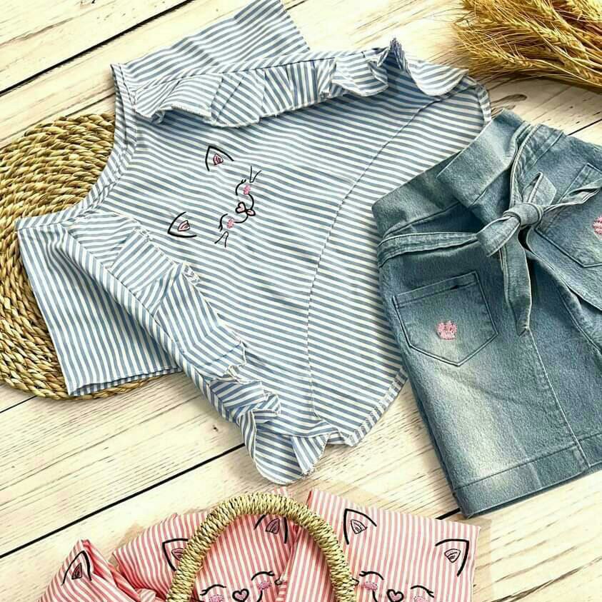 ست جذاب شومیز و شلوارک جین 😍😍😍 🔆جنس شومیز پارچه تترون راه راه الیزه 🔆شومیز حالت ازاد و لطیف 🔆جنس شلوارک پارچه جین کاغذی 🔆کمر شلوارک از پشت کش خورده 🌈2رنگ(ابی و صورتی) ⚡️4سایزی ☀️بلوز 🔆سایز 1 قد جلو لباس 30 قد پشت لباس 39.5پهنا 38 🔆سایز 2 قد جلو لباس 33.5 قد پشت لباس 43پهنا40 🔆سایز 3 قد جلو لباس 37 قد پشت لباس 46.5پهنا42 🔆سایز 4 قد جلو لباس 40.5 قد پشت لباس 49.5پهنا44 ☀️شلوارک 🔆سایز 1 قد 28.5 🔆سایز 2قد 32.5 🔆سایز3قد 36.5 🔆سایز4قد 40.5