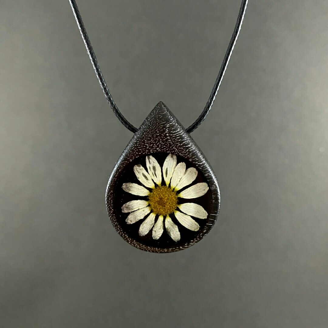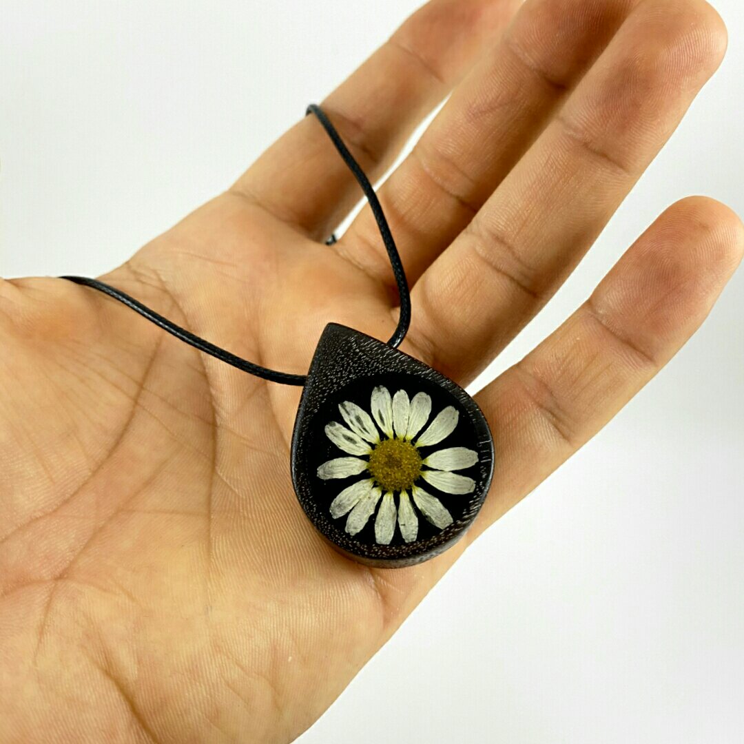چوب گردو و رزین ،گل طبیعی خشک شده و بند چرم