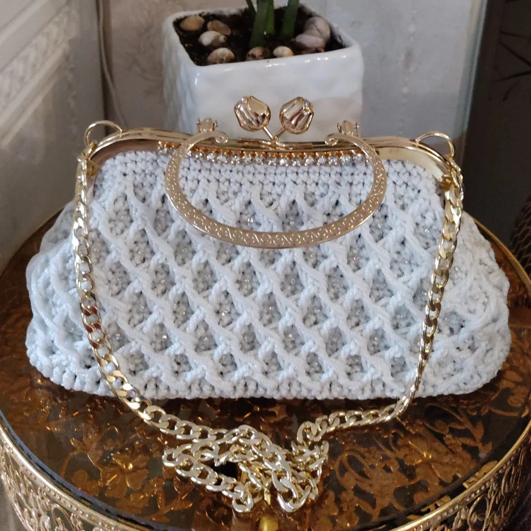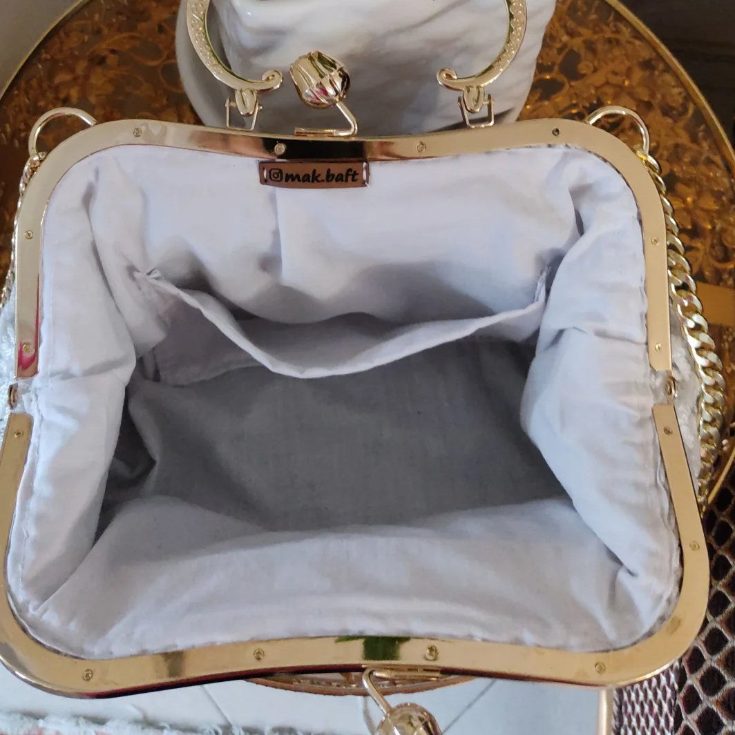 کیف مکرومه برای عروس خانم های گل و خوش سلیقه داری استری و جیب داخلی با ایستایی عالی و با بهترین کیفیت