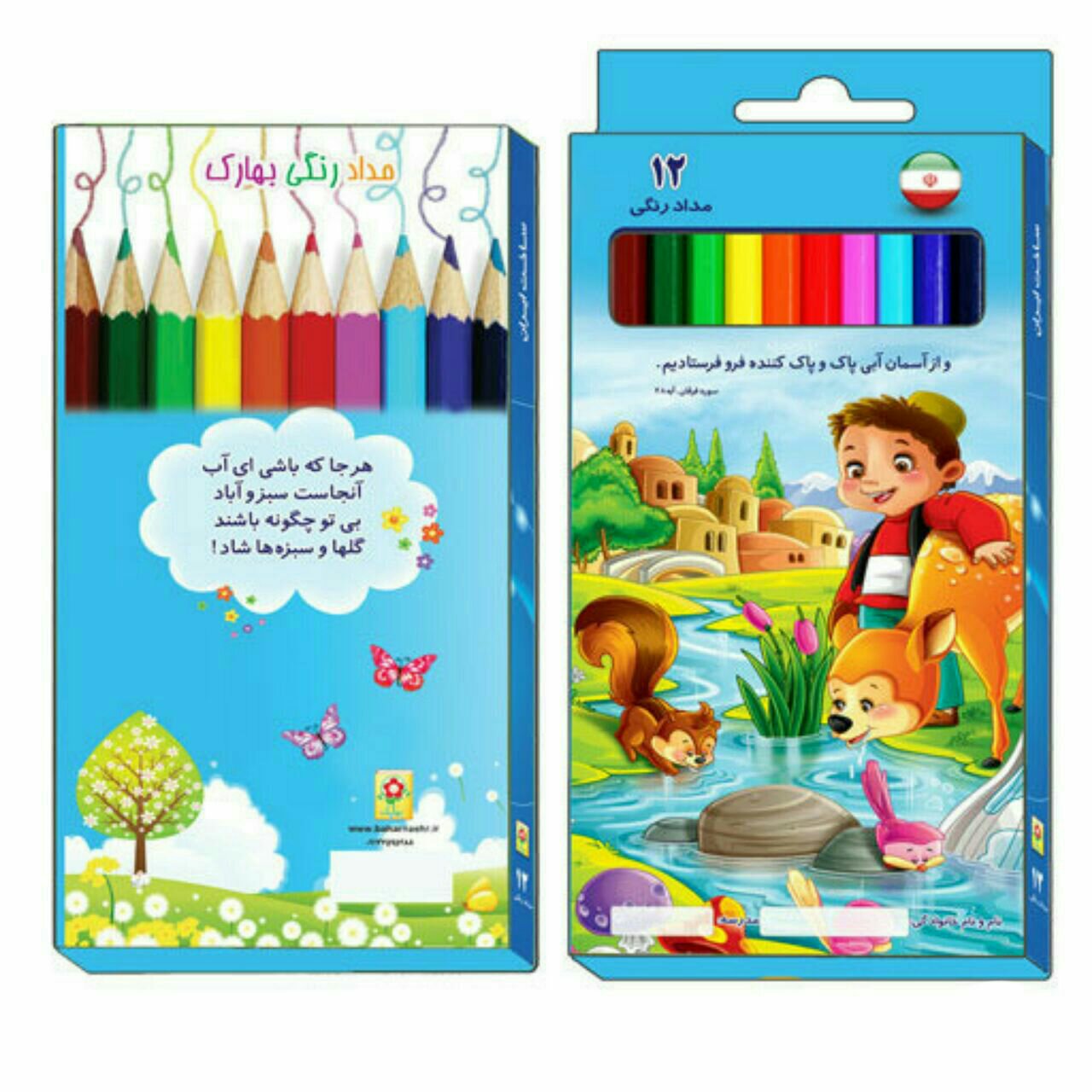 مداد رنگی 12 رنگ تربیت دینی فرزندان از اهداف مهم خانواده ها در عصر حاضر به شمار می رود و مسلم است که والدین برای رسیدن به این هدف ، موانع مختلفی پیش رو دارند که باید برای رفع آنها بکوشند. یکی از این موانع، تهاجم فرهنگی دشمنان است که به طرق مختلفی فرزندانمان را تهدید می کند و از آن جمله، نوشت افزارهایی است که با ترویج الگوهای مبتذل غربی در اختیار کودکان قرار می گیرد. نشر بهار دلها به منظور مقابله با این تهاجم، به تولید لوازم التحریر با طرح های ملی، مذهبی و شهدا، با کیفیت مناسب و جذاب اقدام کرده است. این مدادرنگی ها برای دانش آموزان دوره ابتدایی و راهنمایی، که آمادگی بیشتری در پذیرش الگوهای اسلامی دارند، در 12رنگ و کیفیت خوب تولید شده است.
