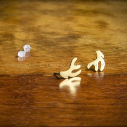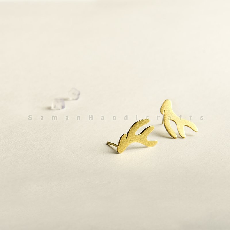 گوشواره میخی برنجی طرح شاخ گوزن با پولیش بافت دار