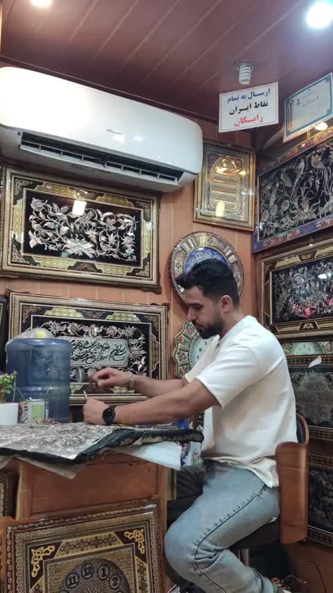 تابلو قلمزنی تمام خاتم ابعاد 100 در 60 جنس قلمزنی مس دارای روکش قلع