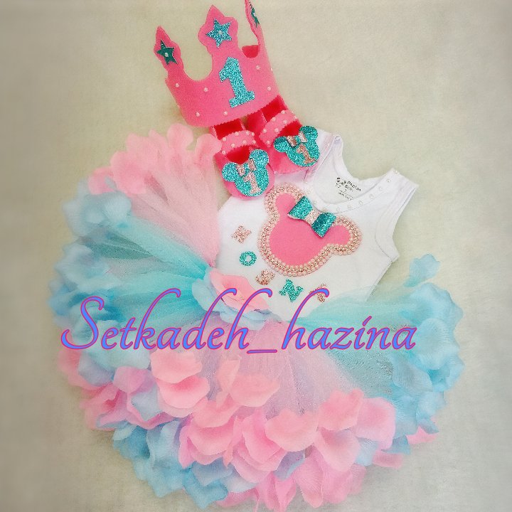 ست لباس میکی موس در رنگ صورتی و آبی سفارش مشتری عزیزم تمام جزئیات با چرم کار شده