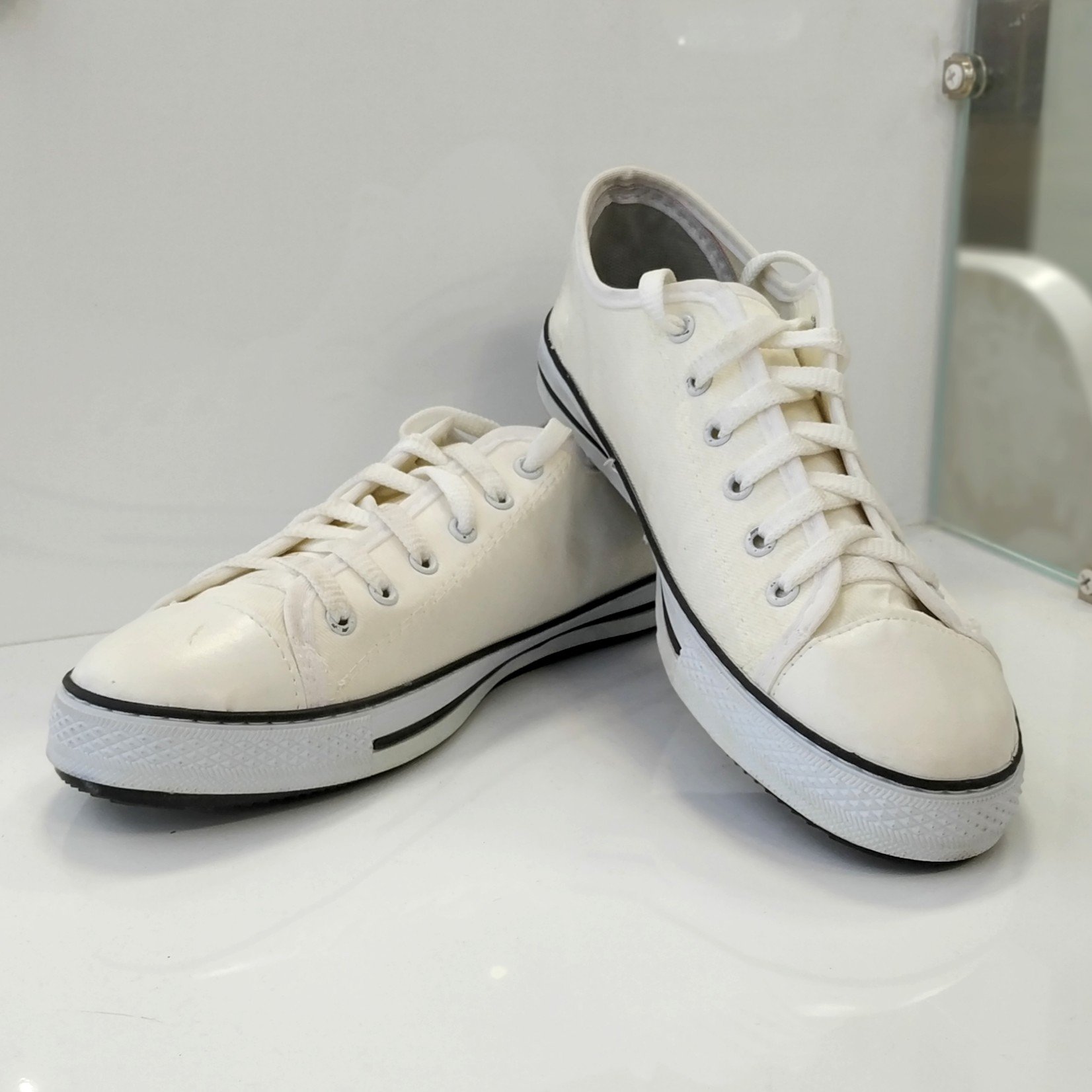 مناسب برای: جوانان و ورزشکاران - سایز: 41 الی 44 - رنگ: سفید - سایر توضیحات: کفی دور دوخت - ابعاد: 25*5 - جنس: نخی