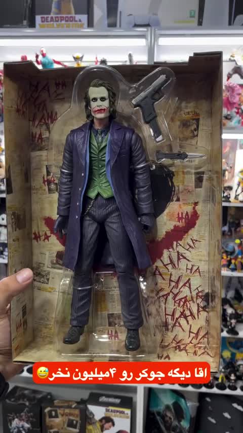 اکشن فیگور جوکر جعبه دار از برند مک فارلن ارتفاع 18سانتی متر دست مفصلی جزئیات ساخت بسیار بالا کار وزن دار توپر سر مفصلی چرخشی همراه با پایه نگهدارنده