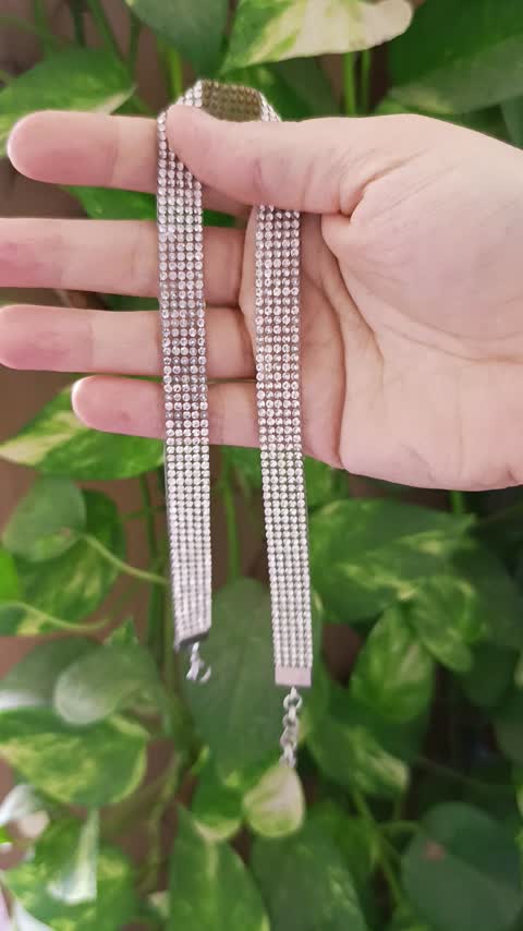 چوکر یا طوق مجلسی طرح نگین بسیار زیبا و خاص با جلوه عالی و قابل اجرا به صورت نازک تر یا پهنتر. مدل پهنتر قیمت بالاتری دارد بسته به میزان پهنا. این مدل دور گردن میچسبد و پشت کار زنجیر تنظیم سایز دارد برای اینکه برای هر سایزی مناسب باشد. به دلیل اقتصادی بودن کار مراقبتی میباشد و دور از عطر و شوینده ها باید نگهداری شود. قابل سفارش به صورت ست گردنبند و دستبند و پابند و گوشواره میباشد.