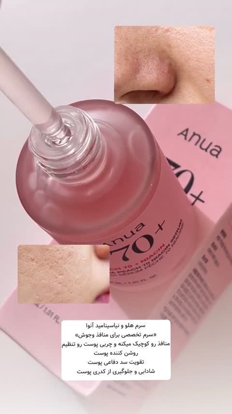 ترکیب جادویی هلو و نیاسینامید برای پوست بینقص! مرطوب کننده و آنتی اکسیدان جهت حفاظت از پوست در برابر عوامل مضر محیطی با عصاره هلو تقویت سد دفاعی پوست، کاهش منافذ و یکدست کننده رنگ و تناژ پوست با ترکیب نیاسینامید حاوی ویتامین B12 و هیالورونیک اسید با خواص تغذیه و آبرسانی به پوست حاوی هیالورونیک اسید جهت تنظیم رطوبت و سفت و حجیم کننده پوست پاکسازی سلول های مرده پوست و کنترل کننده ترشح سبوم پوست قابل استفاده برای انواع پوست حتی پوست های حساس و خشک حفظ سلامت و تعادل فلور پوست با ترکیب تخمیر لاکتوباسیلوس ایجاد پوستی سالم، شفاف، صاف و یکدست با استفاده مداوم کمک به کاهش رنگدانه ها و کنترل ملانین جهت رفع لک لایه برداری ملایم از پوست با بتائین سالیسیلات (BHA) حاوی 70 درصد عصاره میوه هلو و 5 درصد نیاسینامید حاوی BHA با خاصیت ضد التهابی و آنتی باکتریال پاکسازی منافذ از آلودگی و جوش های سرسیاه حفظ سلامت، درخشندگی و جوانی پوست فاقد تست حیوانی و وگان این محصول تنهادرصورتی قابل عودت دادن هست که پلمپش بازنشده باشه قبل ازبازکردن پلمپ لطفا کامل دقت کنید اگر دنبال یه سرم سبک و موثر برای مبارزه با جوش و لکهای صورتت هستی، این سرم با نیاسینامید و هلو ترکیب کاملیه!🍑 همیشه دنبال یه محصولی بودی که هم با جوشها و لکهای سمج صورتت خداحافظی کنی، هم پوستتو روشنتر و نرمتر کنه؟ سرم هلو و نیاسینامید آنوا دقیقا همونه! ...